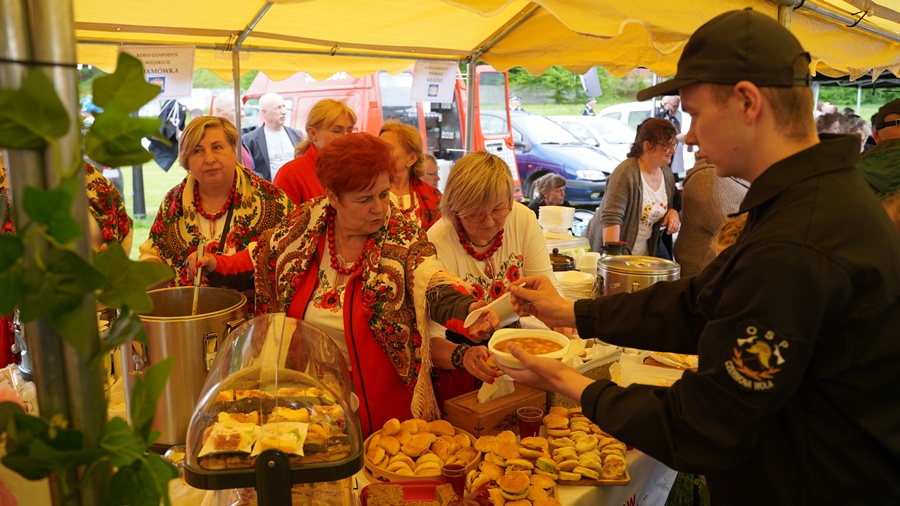 Organizatorzy zadbali również o coś dla ciała. Do strefy gastronomicznej wypełnionej lokalnymi pysznościami zaprosiły gospodynie wiejskie. Członkowie kół gospodyń wiejskich i stowarzyszenia przygotowali przeróżne potrawy. W menu znalazło się coś na ciepło i na zimno, coś na słodko i na słono – dla każdego coś dobrego. A na degustację pysznych dań zaprosiły: koła gospodyń wiejskich z Czerc, Czerwonej Woli, Dybkowa, Leżachowa, Pigan, Paluch i Wylewy, sołectwo Dobra i sołectwo Rudka, Stowarzyszenie „Aktywni w Sieniawie” oraz koła gospodyń wiejskich z gminy Adamówka – koło z Krasnego i Adamówki. Przygotowane przez gospodynie pyszności smakowały naprawdę wybornie i były za darmo.