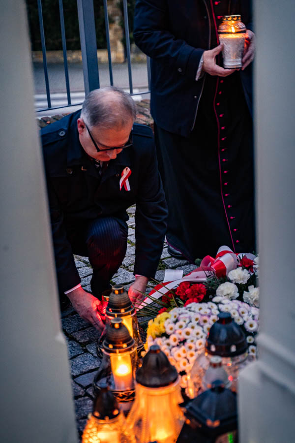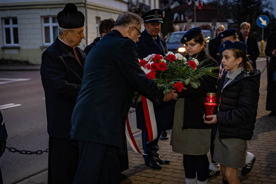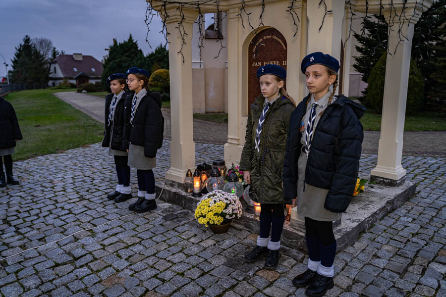 Po nabożeństwie nastąpiło złożenie kwiatów i zapalenie zniczy pod pomnikiem św. Jana Pawła II oraz Tablicą Legionistów – symbolem pamięci o tych, którzy walczyli o niepodległą Polskę.