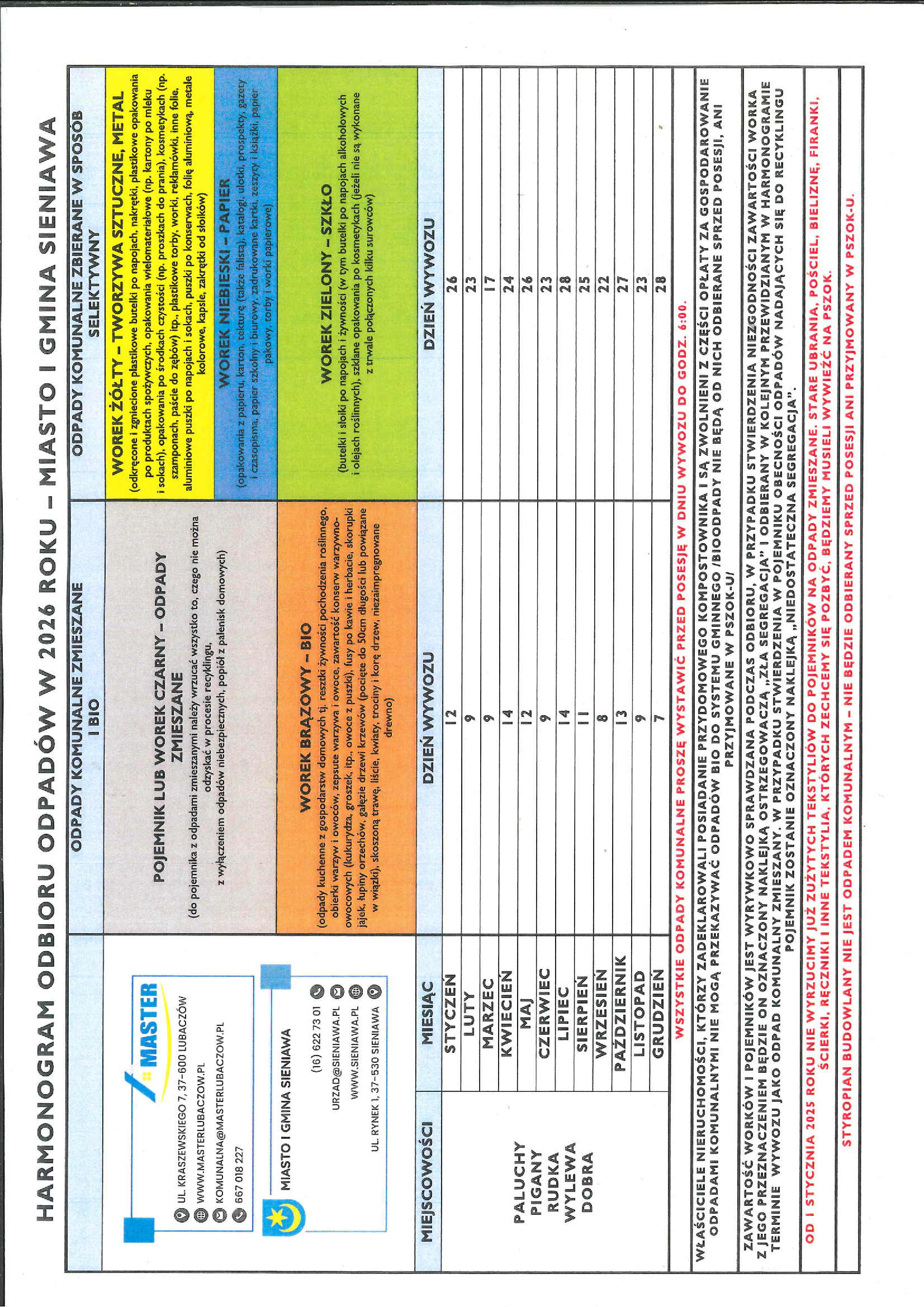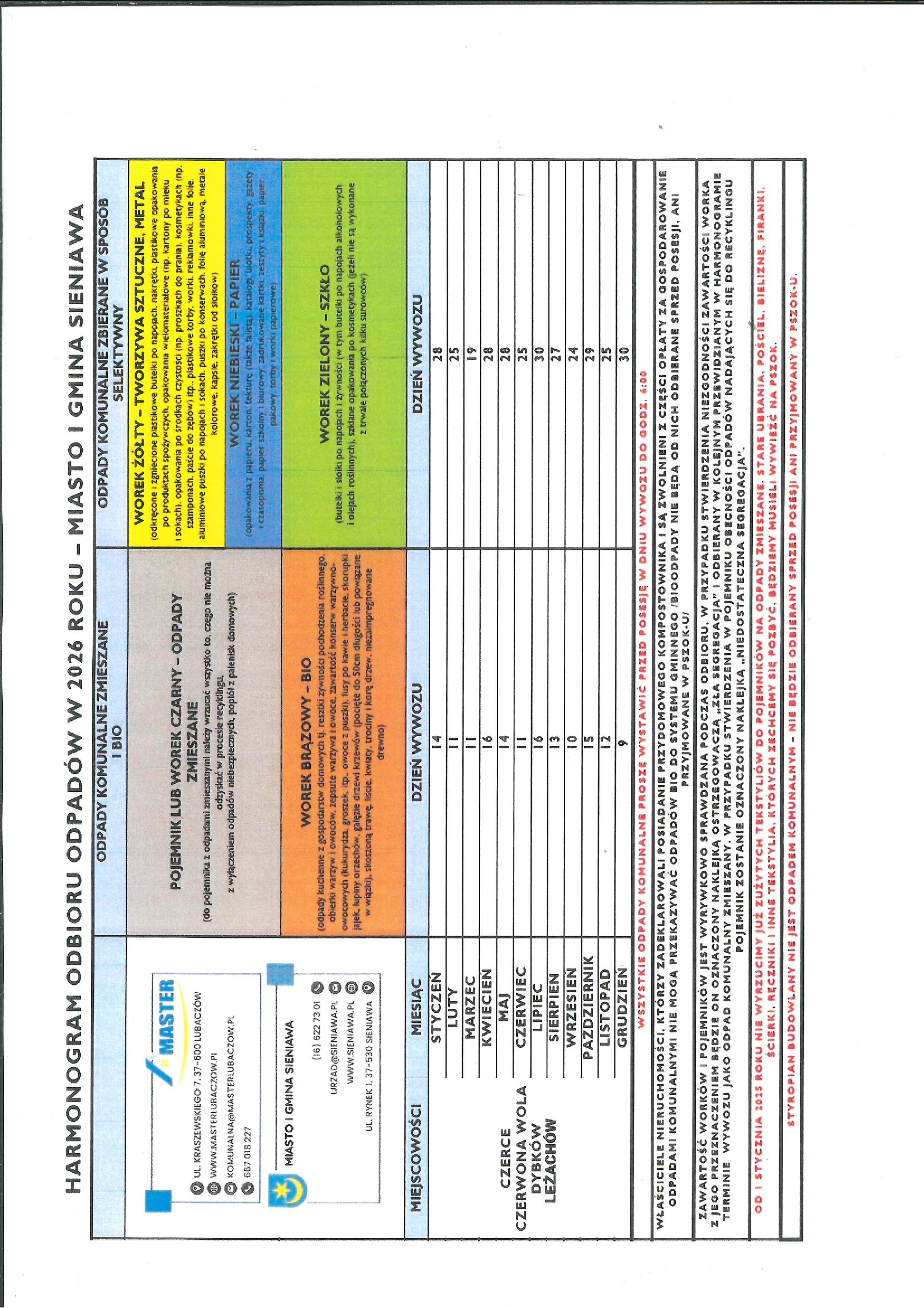 • Harmonogram odbioru odpadów
