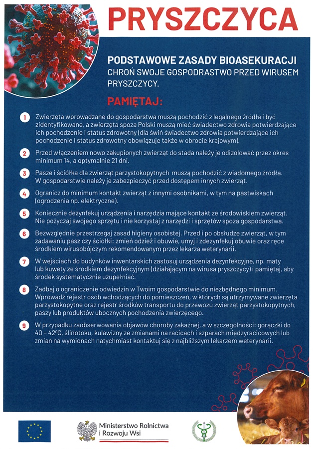 Powiatowy lekarz Weterynarii w Przeworsku przekazuje informację nt. pryszczycy zwierząt parzystokopytnych