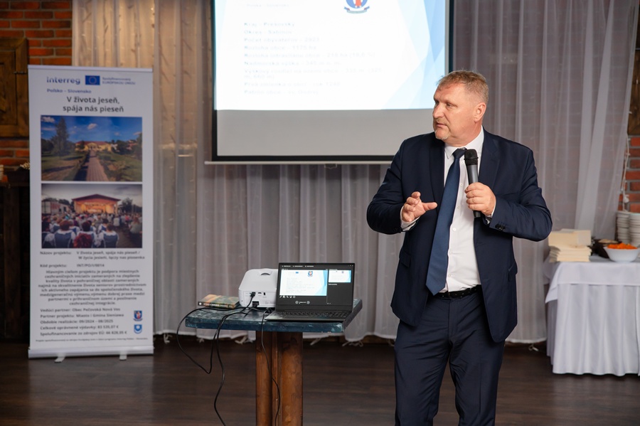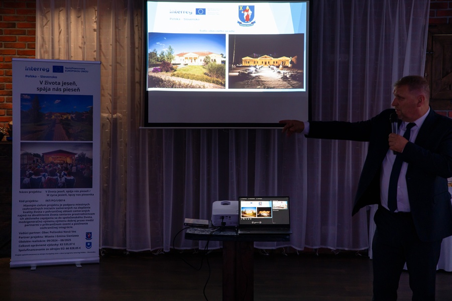 Wizyta w partnerskiej gminie miała związek z projektem realizowanym wspólnie z gminą Pecovska Nova Ves pn. „W życia jesieni łączy nas piosenka” w ramach programu Interreg Polska Słowacja 2021-2027. Podczas dwudniowego wydarzenia uczestnicy brali udział w festiwalu piosenki ludowej w wykonaniu zespołów folklorystycznych z pogranicza polsko – słowackiego oraz warsztatach twórczych poświęconych podtrzymywaniu tradycji ludowych i aktywizacji seniorów w życiu społecznym a także wymianie międzypokoleniowej.