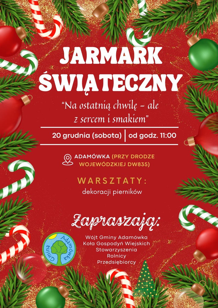 Serdecznie zapraszamy na Jarmark Świąteczny w Adamówce – „Na ostatnią chwilę, ale z sercem i smakiem!” ❤️