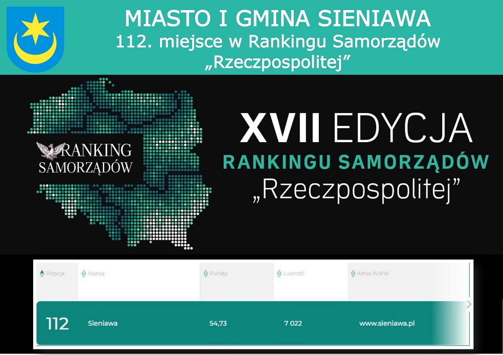 112. miejsce Miasta i Gminy Sieniawa w Rankingu Samorządów "Rzeczpospolitej" 2021