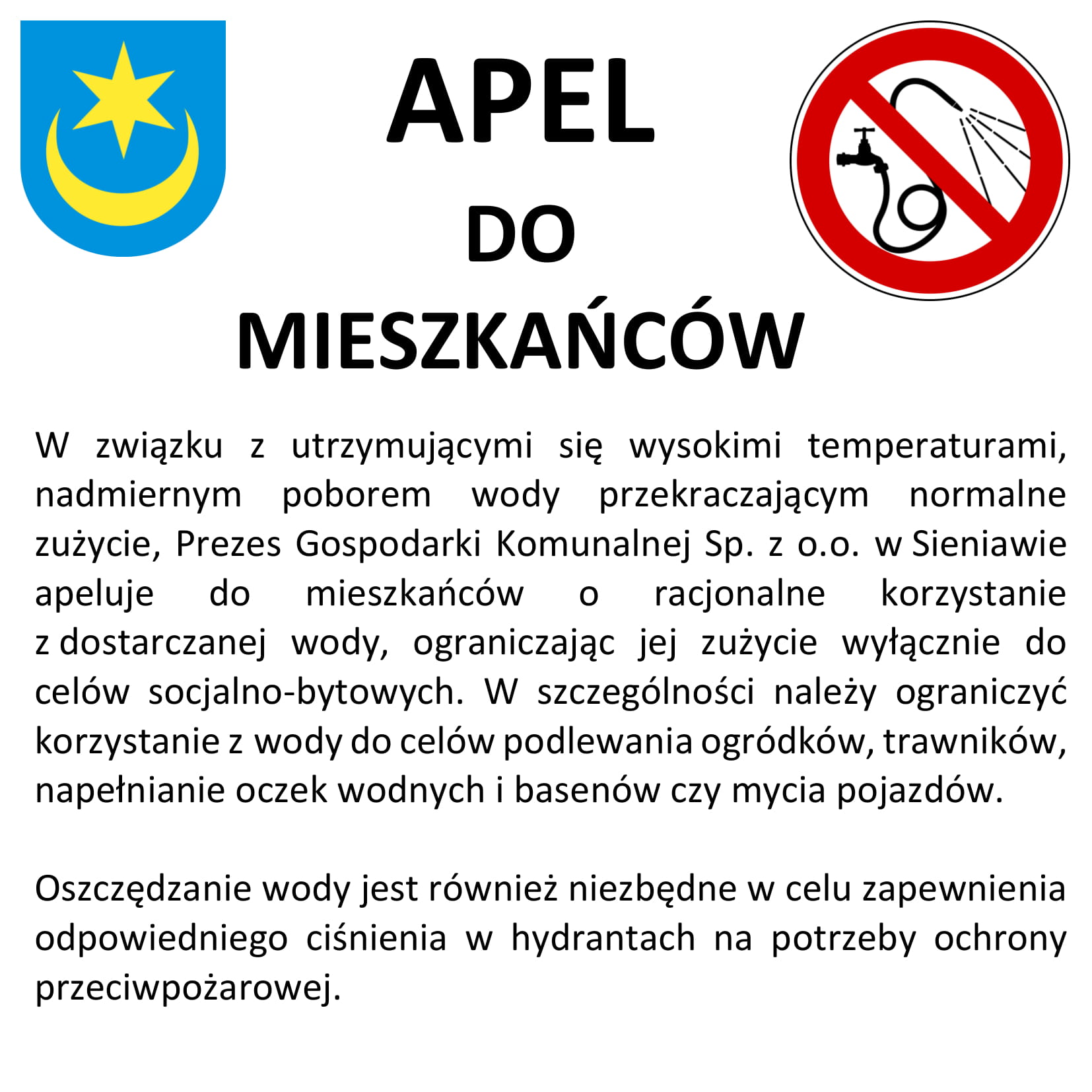 W związku z utrzymującymi się wysokimi temperaturami, nadmiernym poborem wody przekraczającym normalne zużycie, Prezes Gospodarki Komunalnej Sp. z o.o. apeluje do mieszkańców o racjonalne korzystanie z dostarczanej wody, ograniczając jej zużycie wyłącznie do celów socjalno-bytowych.