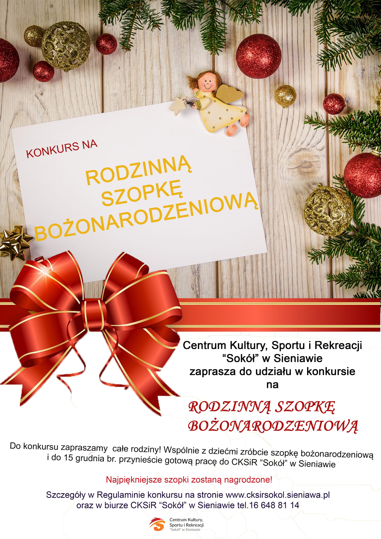 Centrum Kultury, Sportu i Rekreacji "Sokół" w Sieniawie zaprasza do udziału w konkursie na Rodzinną Szopkę Bożonarodzeniową.