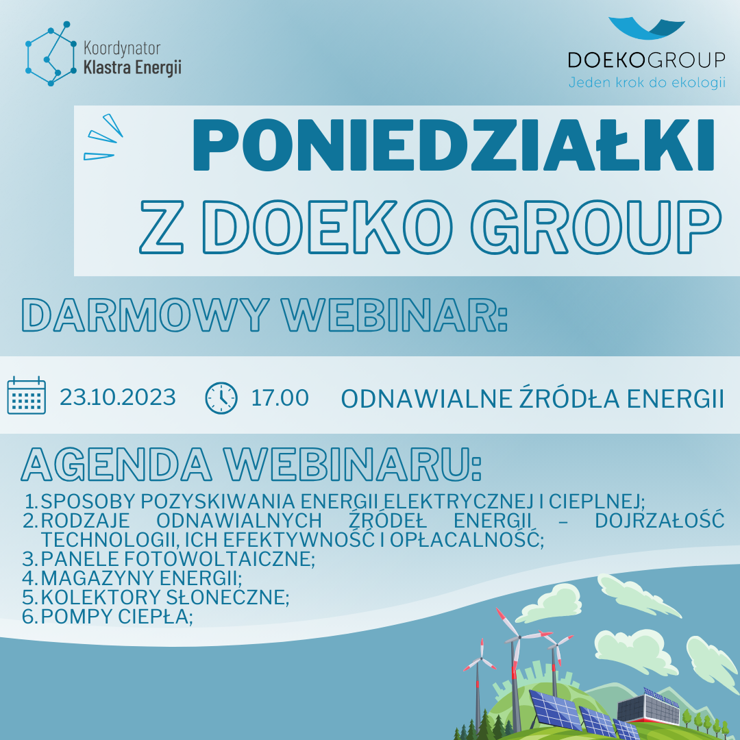 Serdecznie zapraszamy wszystkich zainteresowanych do rejestracji na darmowy cykl webinarów "PONIEDZIAŁKI Z DOEKO GROUP”.