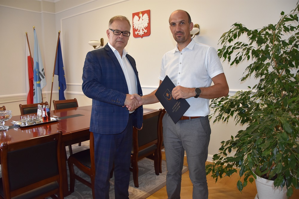 Burmistrz Miasta i Gminy Sieniawa Witold Mrozek złożył gratulacje panu Erykowi Ceglakowi z okazji objęcia funkcji Prezesa Gospodarki Komunalnej Sp. z o.o. w Sieniawie.