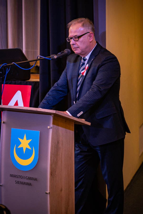 Następnie w sali widowiskowej CKSiR "Sokół" w Sieniawie w obecności pocztów sztandarowych z poszczególnych jednostek OSP i Szkół Podstawowych odśpiewano uroczyście hymn Polski. Uczniowie i nauczyciele Szkoły Podstawowej im. Jana Pawła II w Czerwonej Woli przygotowali wzruszający program artystyczny pt. „I znów rozkwitła róża – Polska”. Występ pełen patriotyzmu, pięknych słów i muzyki przypomniał, jak cennym darem jest wolność.