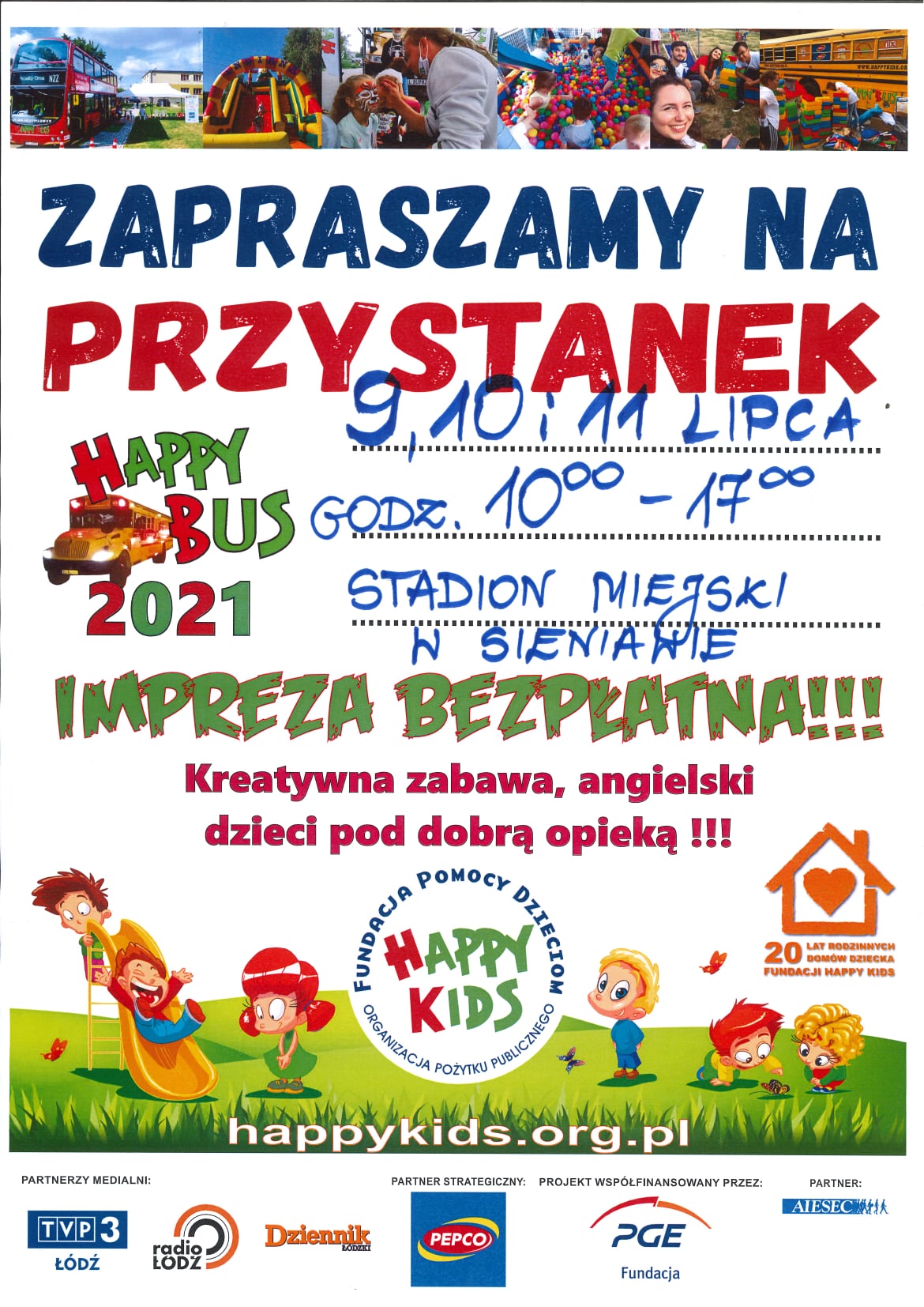 Centrum Kultury, Sportu i Rekreacji „Sokół” w Sieniawie i Fundacja Happy Kids zapraszają dzieci do udziału w akcji Happy Bus.