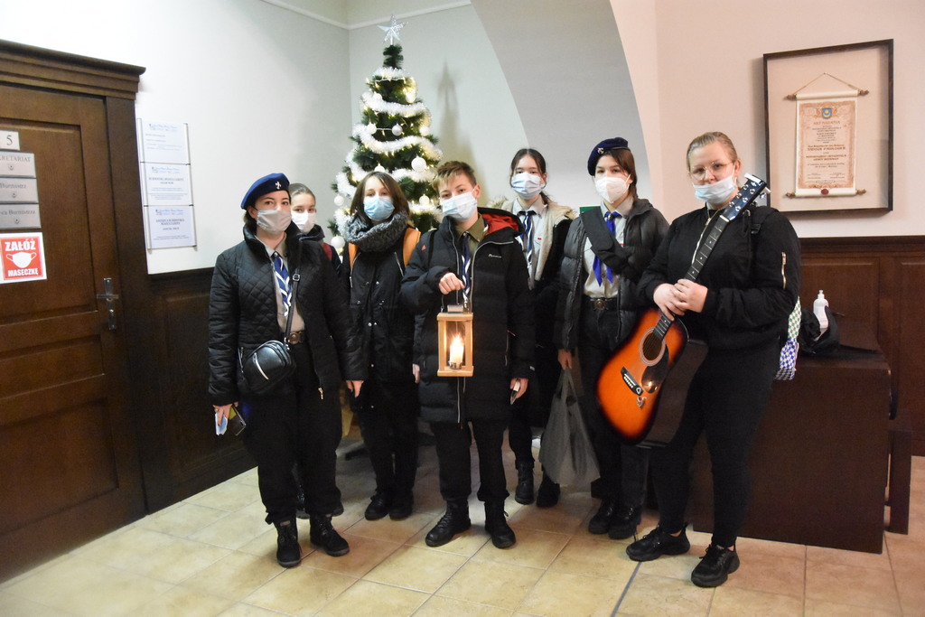 W piątkowe przedpołudnie 17 grudnia 2021 r. do Urzędu Miasta i Gminy w Sieniawie dotarło Betlejemskie Światło Pokoju. Przynieśli je wraz z życzeniami i kolędą harcerze z 4. DH „Sokoły” z Sieniawy na czele z drużynową dh Renatą Gronowicz.