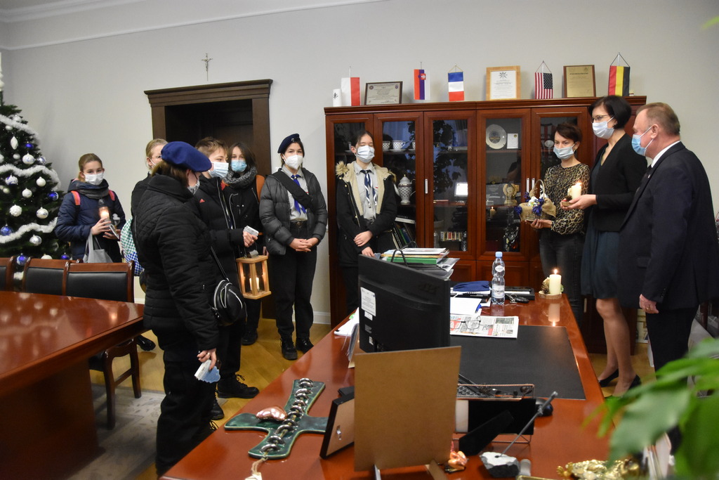 Burmistrz Adam Woś i sekretarz Barbara Matyja podziękowali harcerzom za życzenia i Światło, które niesie nadzieję, motywację i siłę do pokonywania trudności.