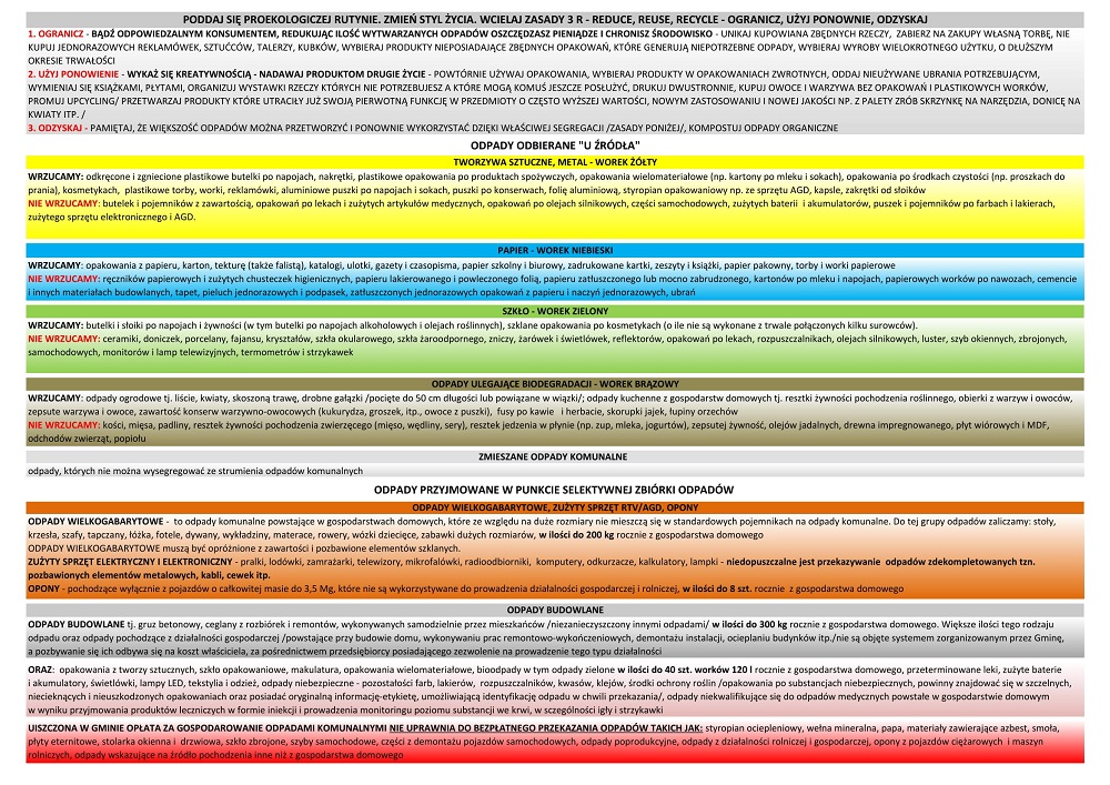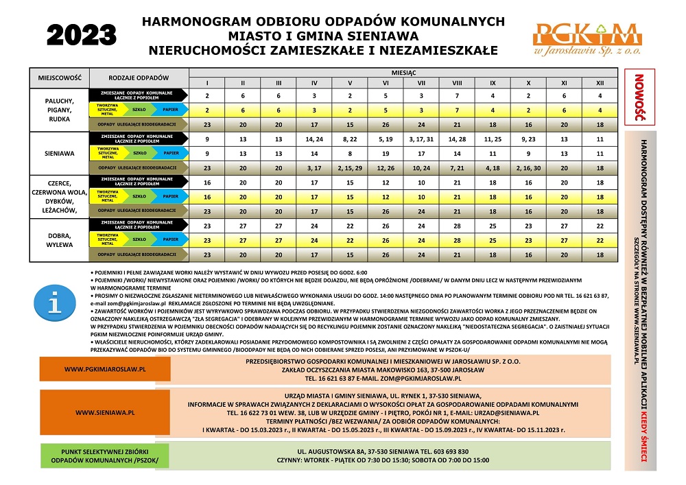 Harmonogram odbioru odpadów komunalnych na 2023 rok