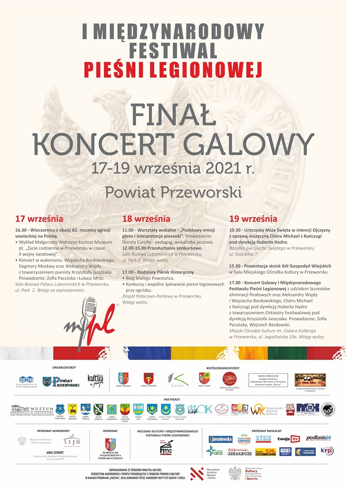 Serdecznie zapraszamy w imieniu Organizatorów na I Międzynarodowy Festiwal Pieśni Legionowej, który odbędzie się w dniach 17-19 września 2021 r. w Przeworsku.