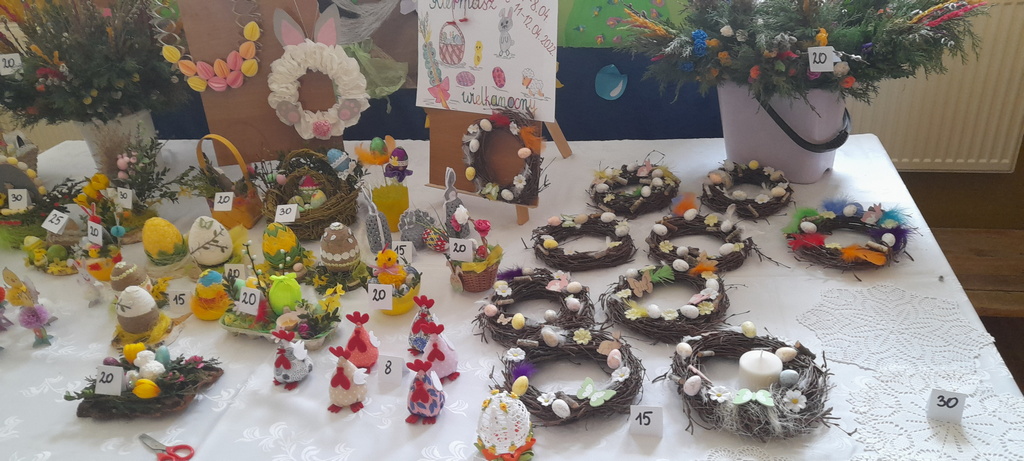 Przepiękne palmy można było zakupić na trwającym dwa dni, 7 i 8 kwietnia 2022 r. szkolnym kiermaszu w Rudce. Oprócz nich królowały tam przepiękne stroiki, pomysłowe pisanki, serwetki, kartki świąteczne i inne dekoracje. Na kolejną odsłonę kiermaszu szkoła zaprasza 11 i 12 kwietnia.