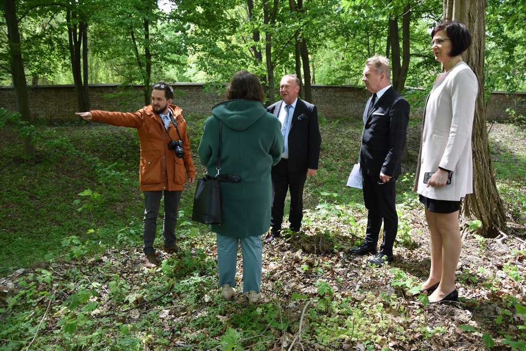 Cel wizyty? Burmistrz Miasta i Gminy Sieniawa planuje zagospodarować przy parku teren tzw. Skałki – zaadaptować na teren wypoczynkowo-rekreacyjny z uwzględnieniem wartości historycznych, które tam się znajdują, czyli dawnych fortyfikacji bastionowych. Pani konserwator została zaproszona, aby określić, jaki zakres prac należy na tym terenie wykonać, by planowaną właśnie funkcję wypoczynkowo-rekreacyjną połączyć z elementem historycznym. Oceniła, że konieczne będzie przeprowadzenie programu konserwatorskiego, który będzie określał, jakie prace należałoby podjąć, aby przynajmniej na dzień dzisiejszy zabezpieczyć te bardzo cenne wartości historyczne.