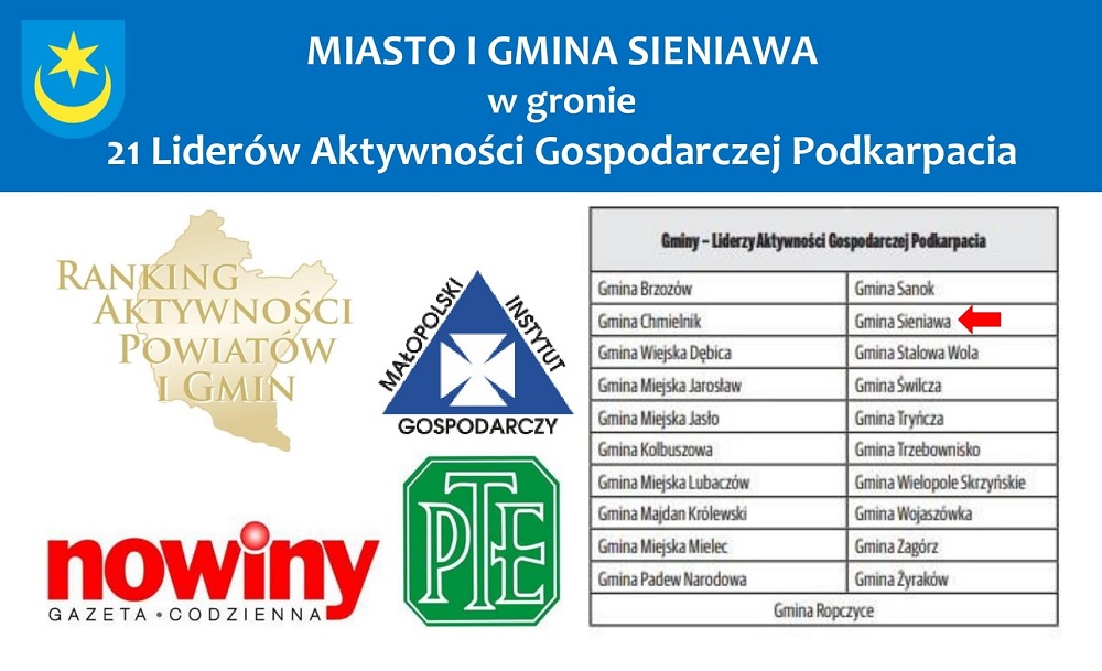 Miasto i Gmina Sieniawa wśród Liderów Aktywności Gospodarczej Podkarpacia!