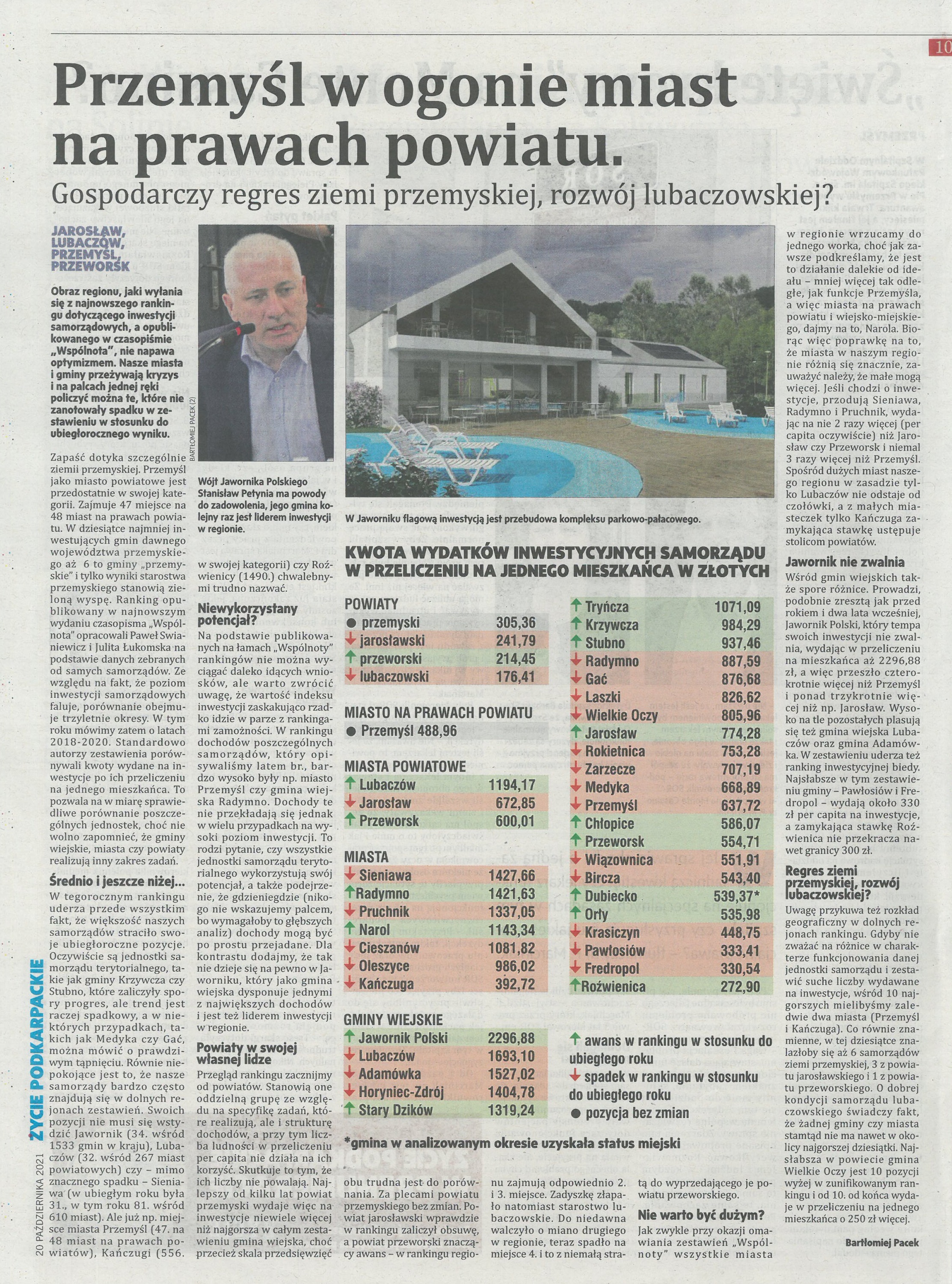 – Metoda rankingu jest identyczna jak w ubiegłych latach. Pod uwagę wzięliśmy całość wydatków majątkowych poniesionych w ostatnich trzech latach (w tym przypadku 2018–2020). W ten sposób chcemy uniknąć dużych, chwilowych wahań wskaźnika będącego podstawą rankingu. Wydatki inwestycyjne, zwłaszcza z mniejszych jednostkach, cechują się znaczną cyklicznością. W poszczególnych latach mogą być bardzo wysokie, co wiąże się z realizacją ważnej inwestycji, aby potem okresowo spadać do znacznie niższego poziomu – podkreśla prof. Paweł Swianiewicz, współautor rankingu.