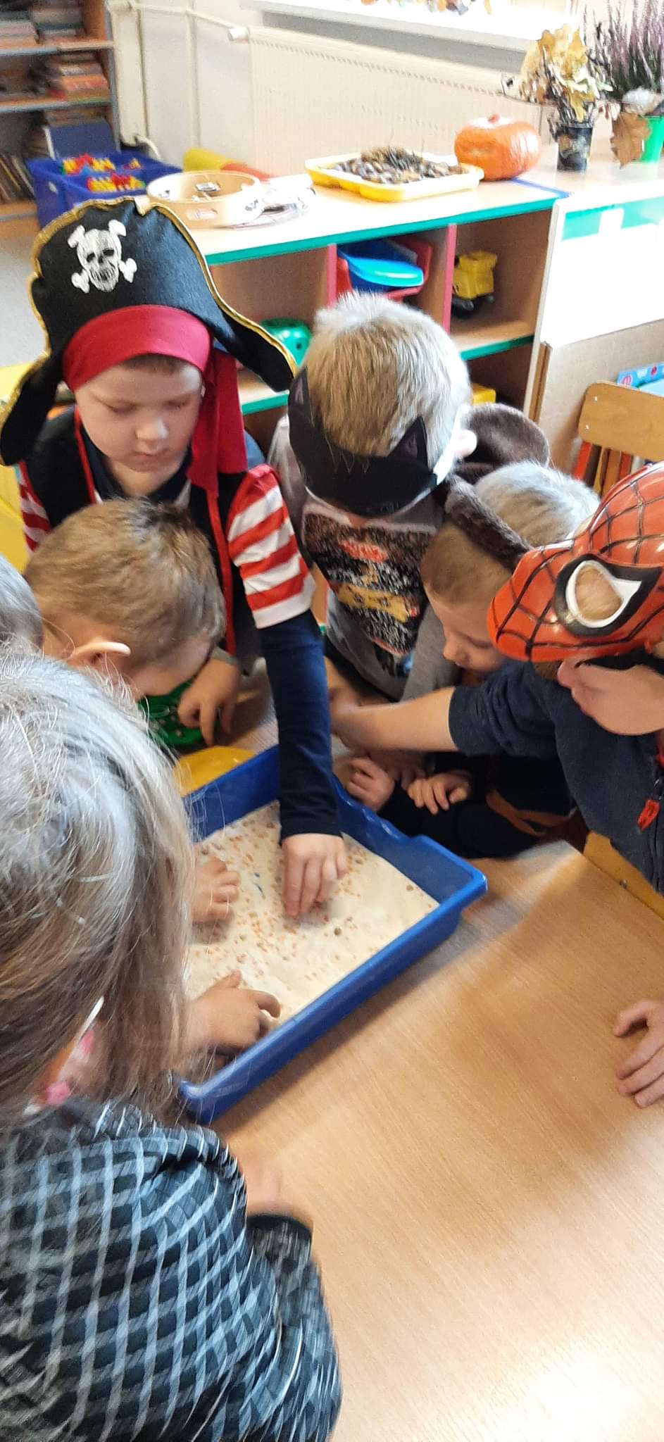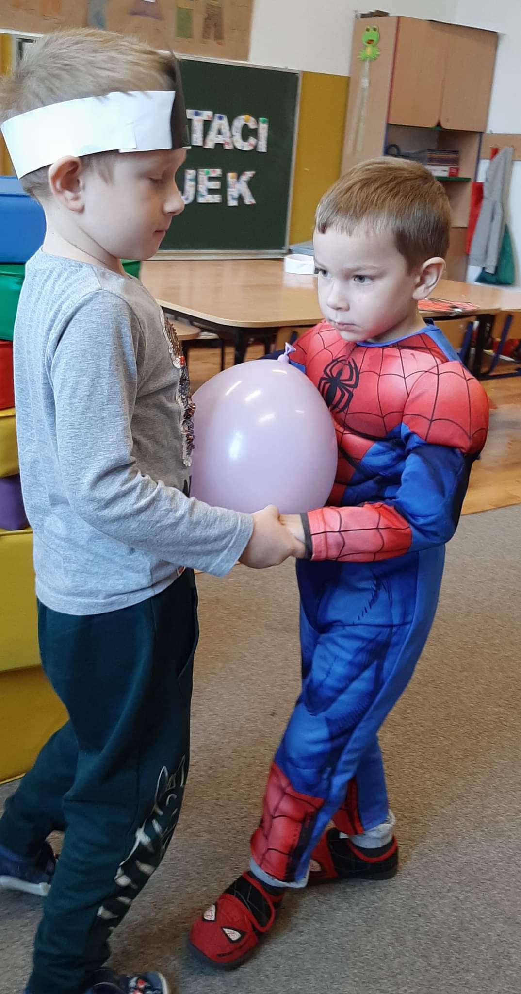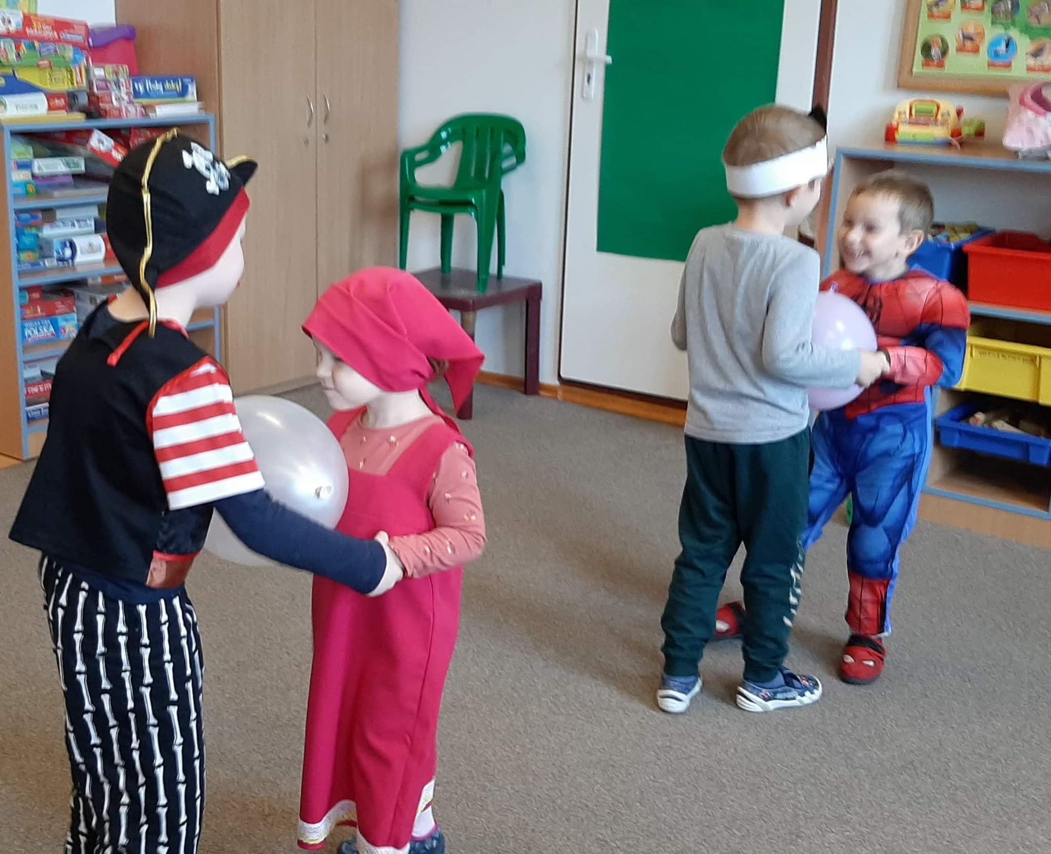 Przedszkolaki razem z wychowawczynią stały się bajkowymi bohaterami. W ramach zabaw dydaktycznych dopasowywały postacie do ich domów i rekwizytów, wybierały ziarenka kaszy (niczym Kopciuszek), układały bajkowe puzzle, z zamkniętymi oczami dzieci pokonywały tor przeszkód Czerwonego Kapturka. A potem odbył się bal bajkowych postaci. To był magiczny, niezwykły czas spędzony w baśniowo-bajkowej scenerii.