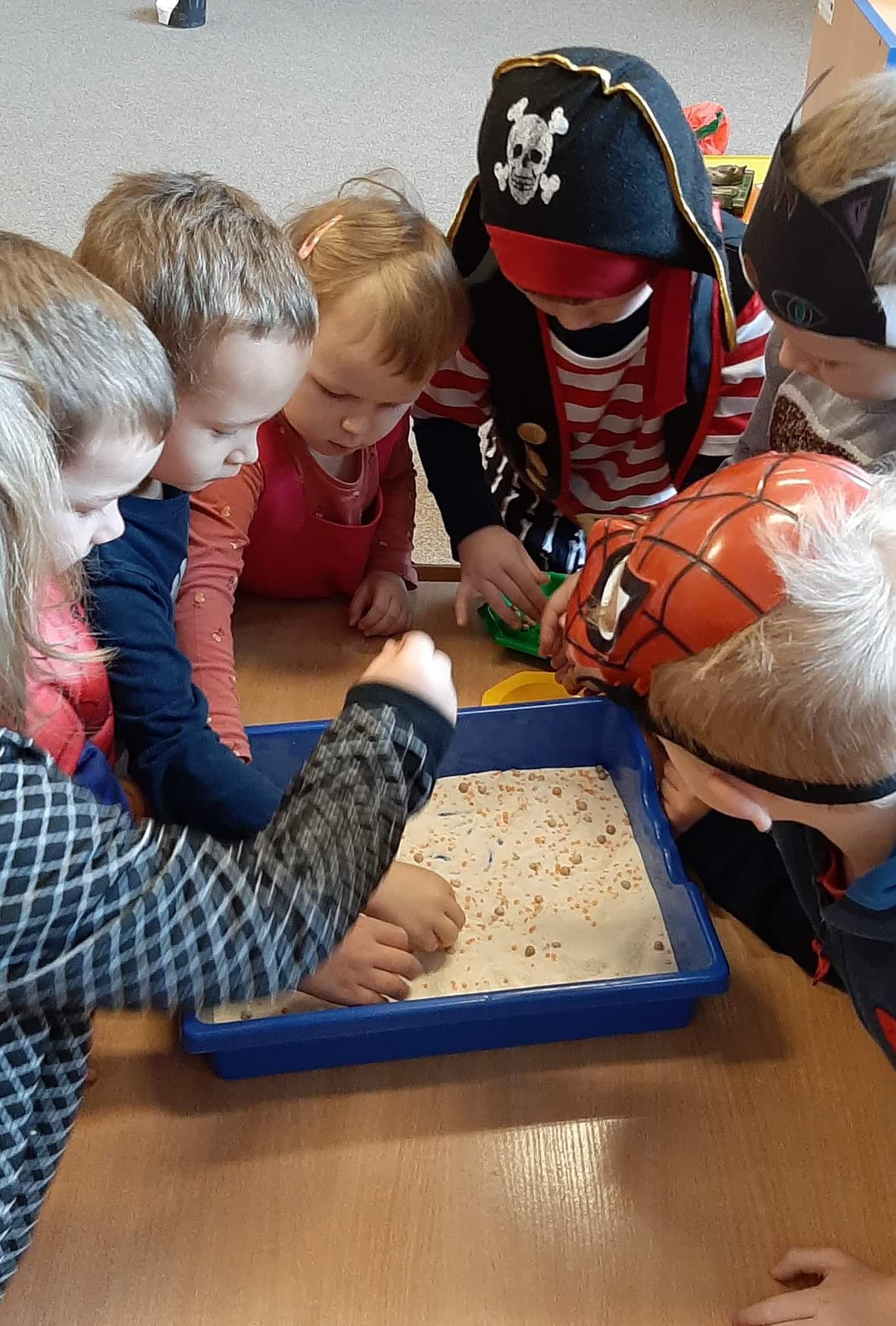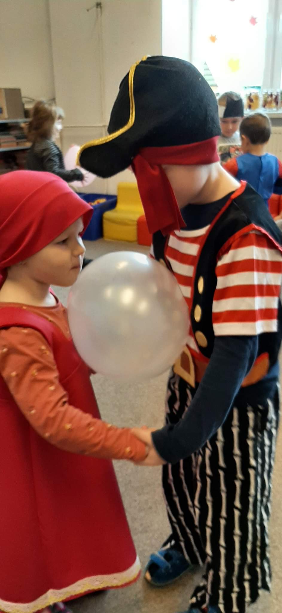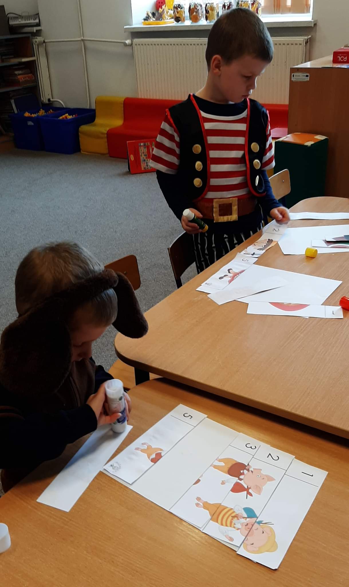 Przedszkolaki razem z wychowawczynią stały się bajkowymi bohaterami. W ramach zabaw dydaktycznych dopasowywały postacie do ich domów i rekwizytów, wybierały ziarenka kaszy (niczym Kopciuszek), układały bajkowe puzzle, z zamkniętymi oczami dzieci pokonywały tor przeszkód Czerwonego Kapturka. A potem odbył się bal bajkowych postaci. To był magiczny, niezwykły czas spędzony w baśniowo-bajkowej scenerii.