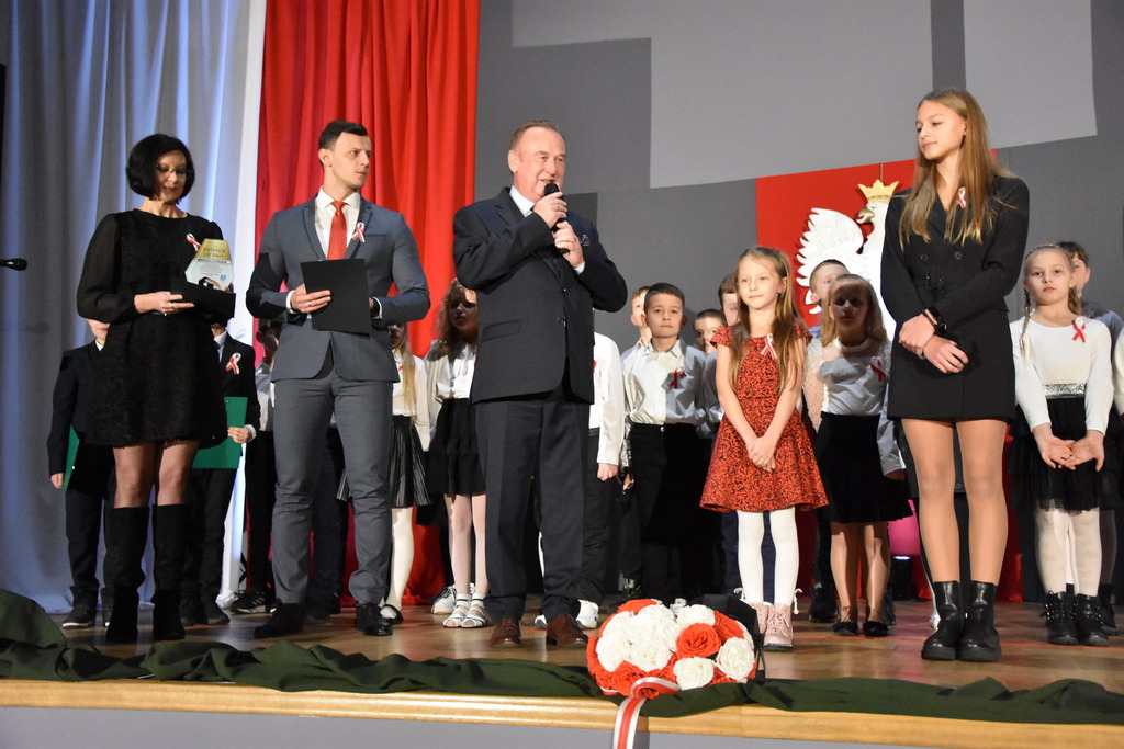 Ostatnim, ale jakże pięknym i podniosłym akcentem obchodów, była okolicznościowa akademia w CKSiR „Sokół” w wykonaniu uczniów Szkoły Podstawowej w Sieniawie przygotowana pod opieką nauczycieli: Iwony Kołtowskiej, Beaty Buniowskiej i Tomasza Dąbrowskiego. Młodzi ludzie z niebywałym kunsztem przypomnieli ten trudny i smutny okres w historii Polski – zabory i ostateczną utratę państwowości, nieustanne zrywy, zmierzające do odzyskania wolności i suwerenności, czas zawiedzionych nadziei i rozczarowań oraz walki o wolność. Nie zabrakło okolicznościowych wierszy i patriotycznych pieśni w wyjątkowych interpretacjach, które poruszyły serca tak licznie zgromadzonych słuchaczy.