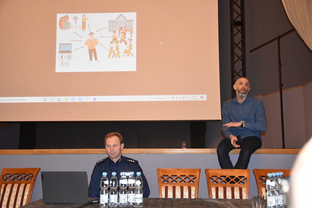Wydarzenie zostało poświęcone aktualnym zagrożeniom wynikającym z uzależnień wśród dzieci i młodzieży oraz relacjom rówieśniczym w grupie po okresie izolacji. Prelegentami spotkania byli: Przemysław Chruściel – trener warsztatów psychologicznych, profilaktycznych i edukacyjnych, prowadzący warsztaty dla młodzieży, rodziców i nauczycieli w szkołach na terenie Podkarpacia, a także st. asp. Mariusz Czyrny – policjant Komendy Powiatowej Policji w Przeworsku, zajmujący się profilaktyką społeczną i problemami nieletnich. Zaproszeni specjaliści przedstawili nie tylko współczesne zagrożenia, z jakimi mogą zetknąć się nieletni, ale również próbowali wskazać, na co warto zwrócić uwagę w domu i w szkole i jak zareagować, gdy przyjdzie zmierzyć się z problemem.