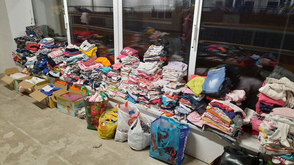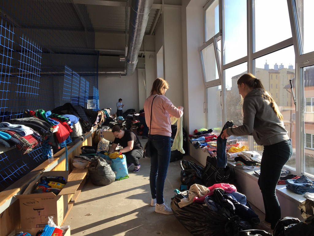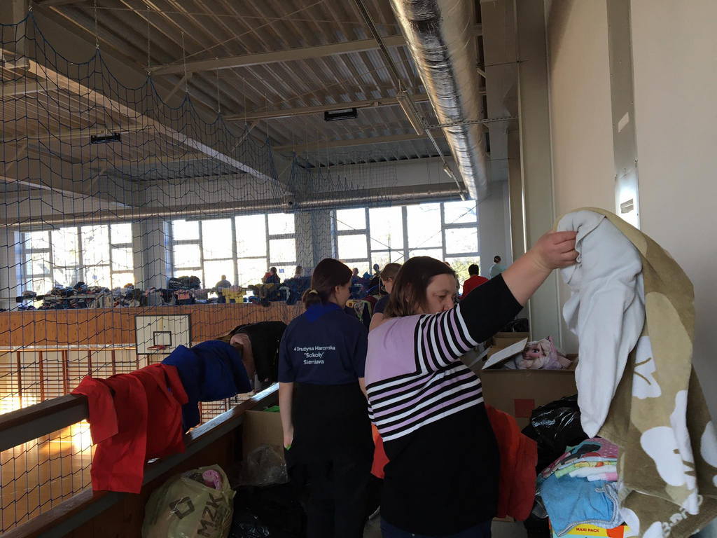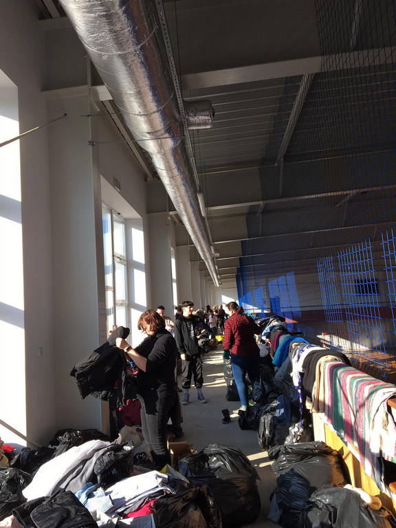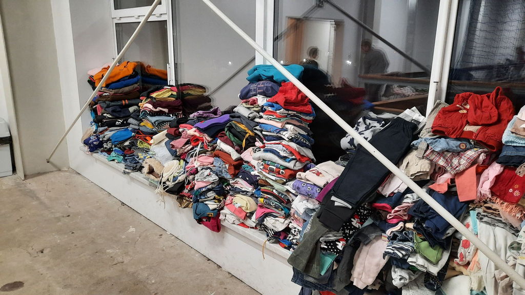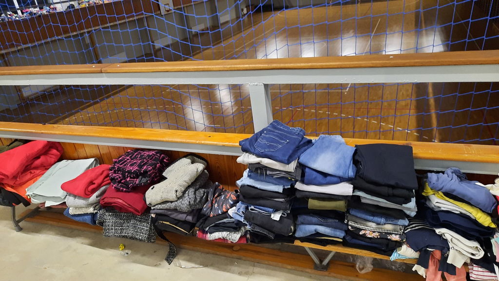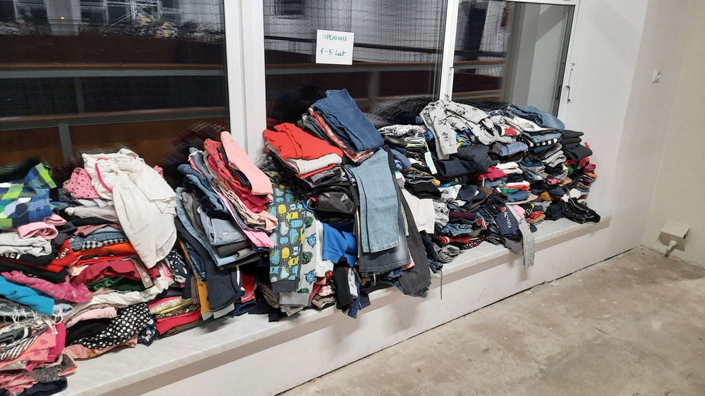 Wszystko zostało posegregowane według rodzaju i rozmiaru. Już pierwsza grupa uchodźców zaopatrzyła się w potrzebne rzeczy.