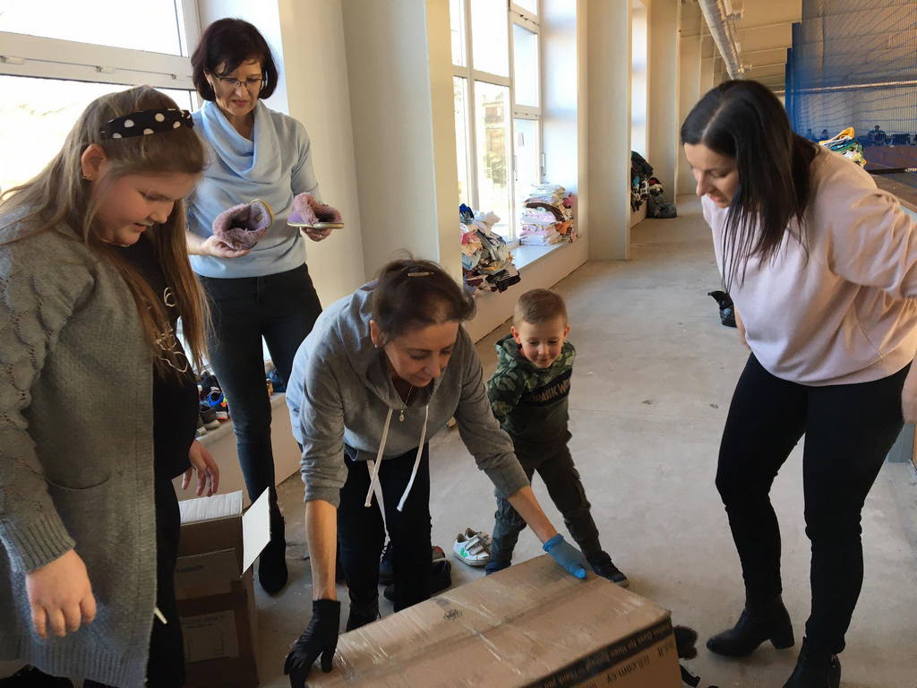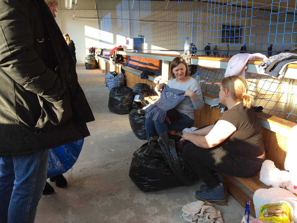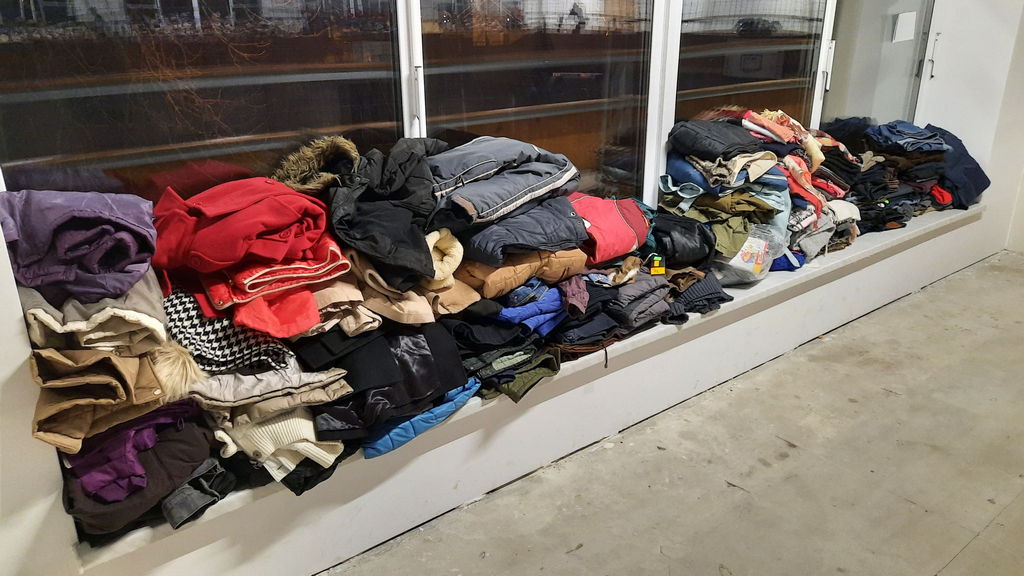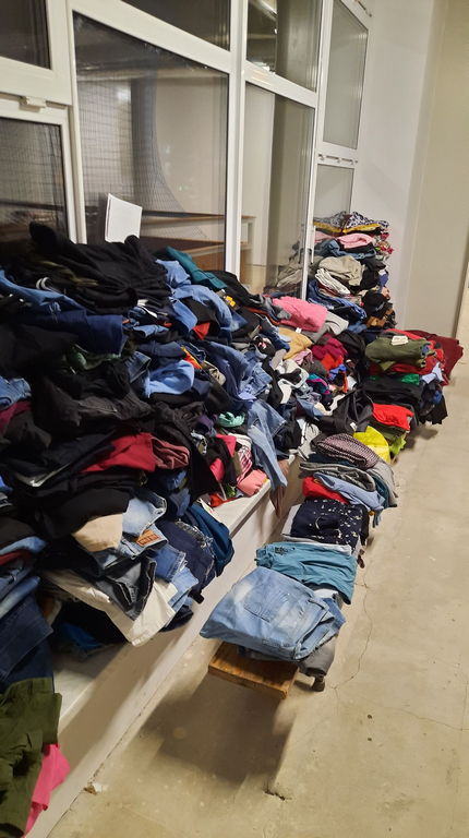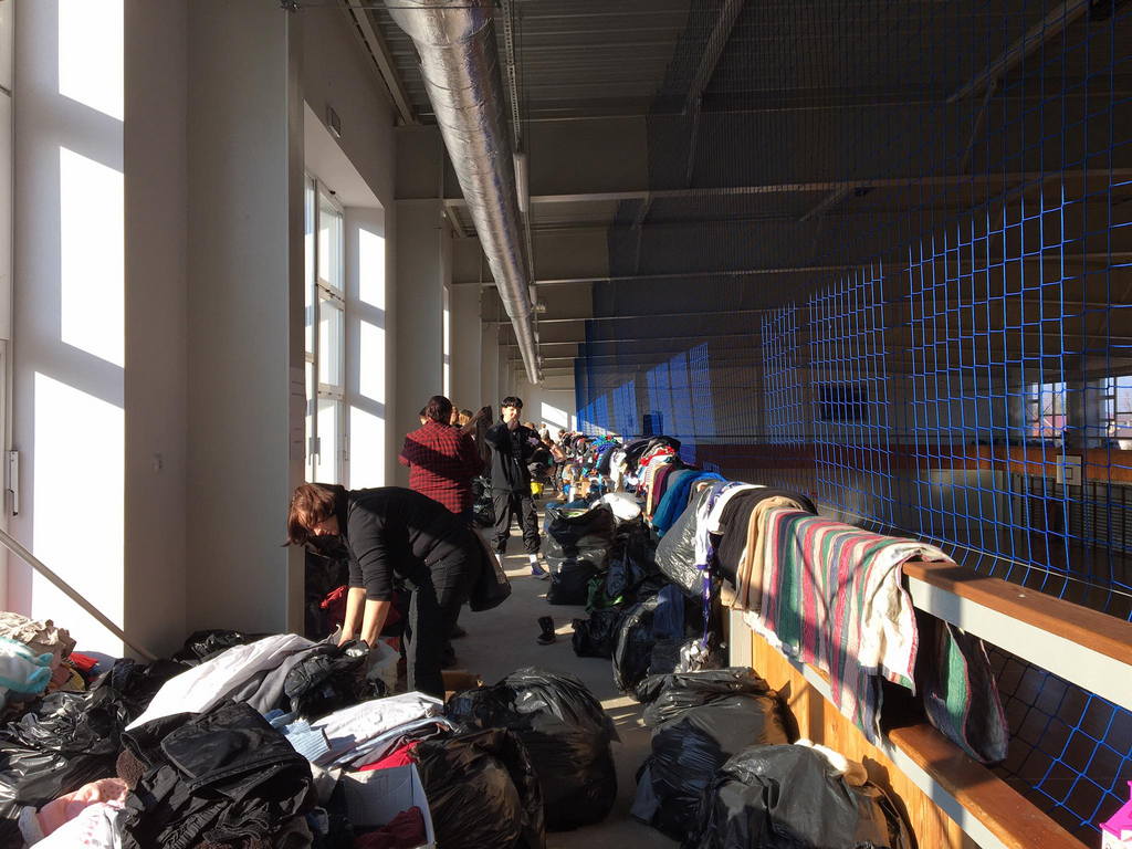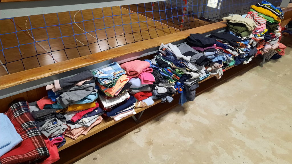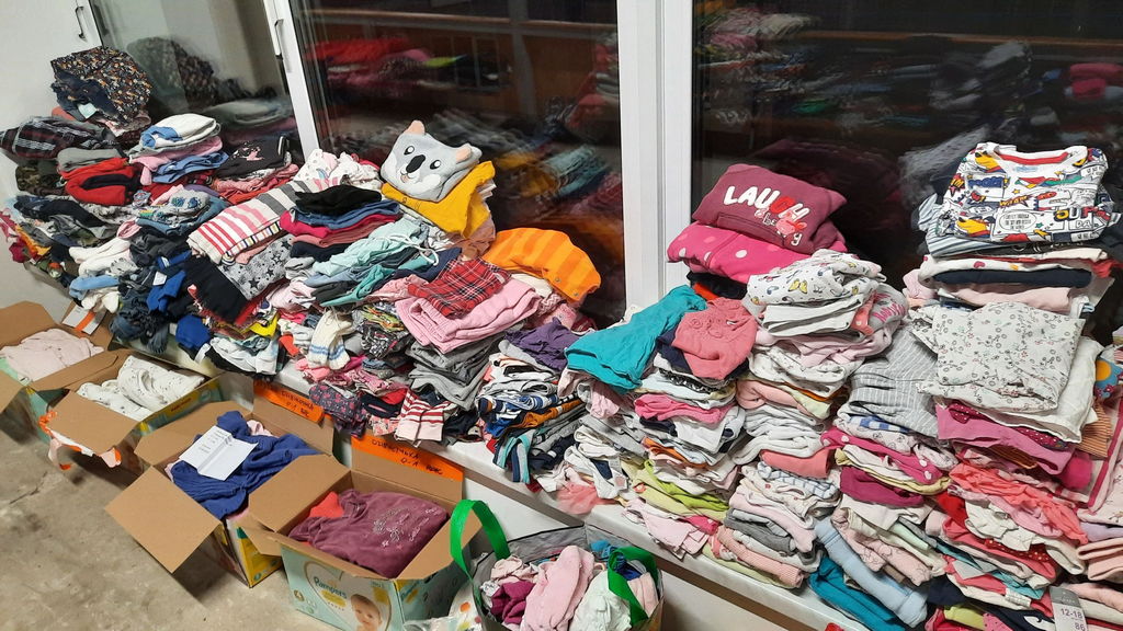 Wszystko zostało posegregowane według rodzaju i rozmiaru. Już pierwsza grupa uchodźców zaopatrzyła się w potrzebne rzeczy.