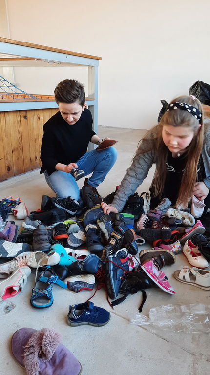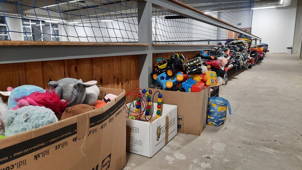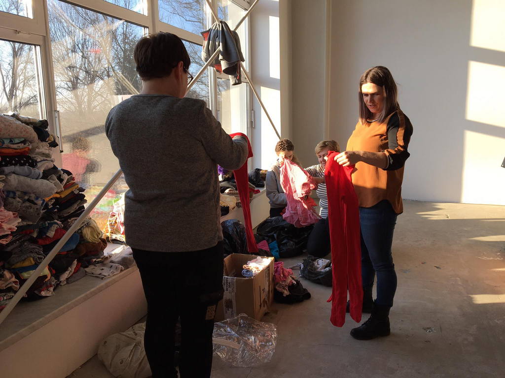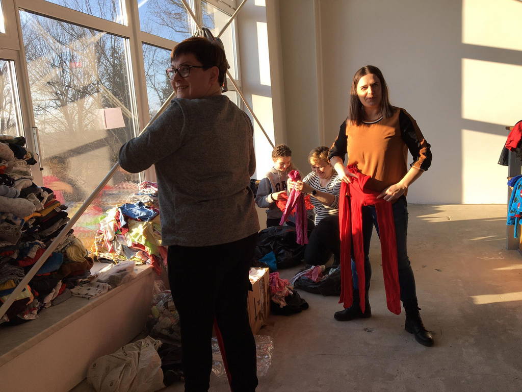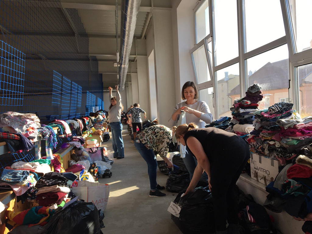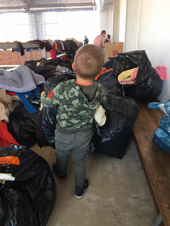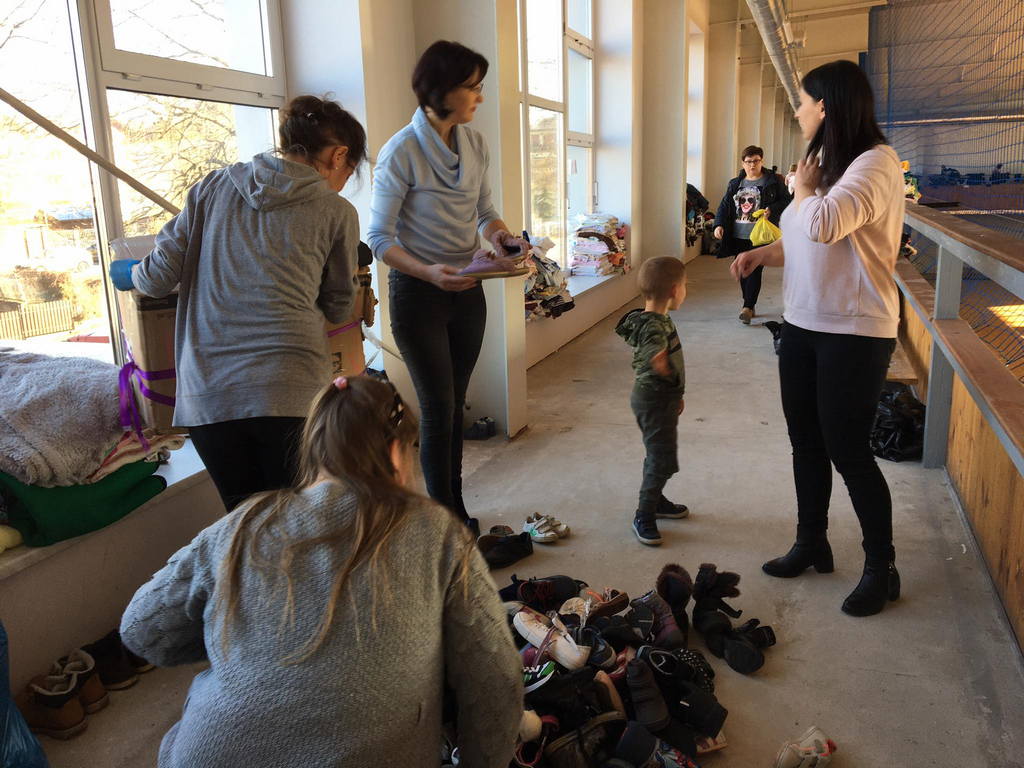 Wszystko zostało posegregowane według rodzaju i rozmiaru. Już pierwsza grupa uchodźców zaopatrzyła się w potrzebne rzeczy.