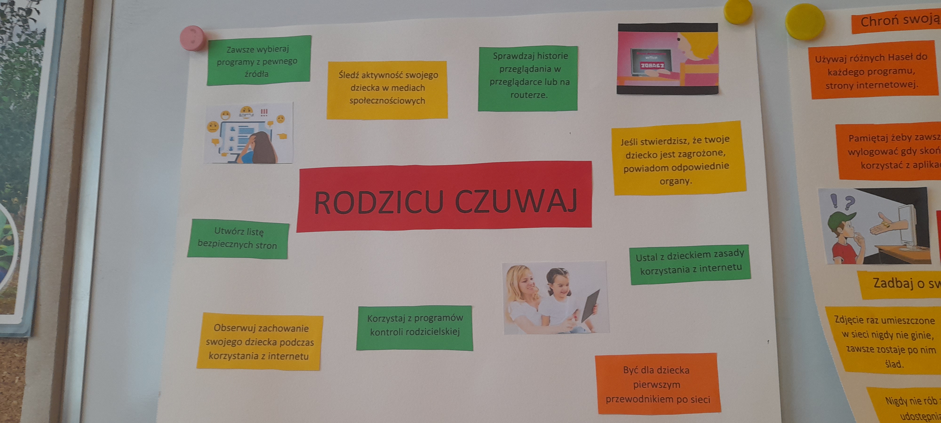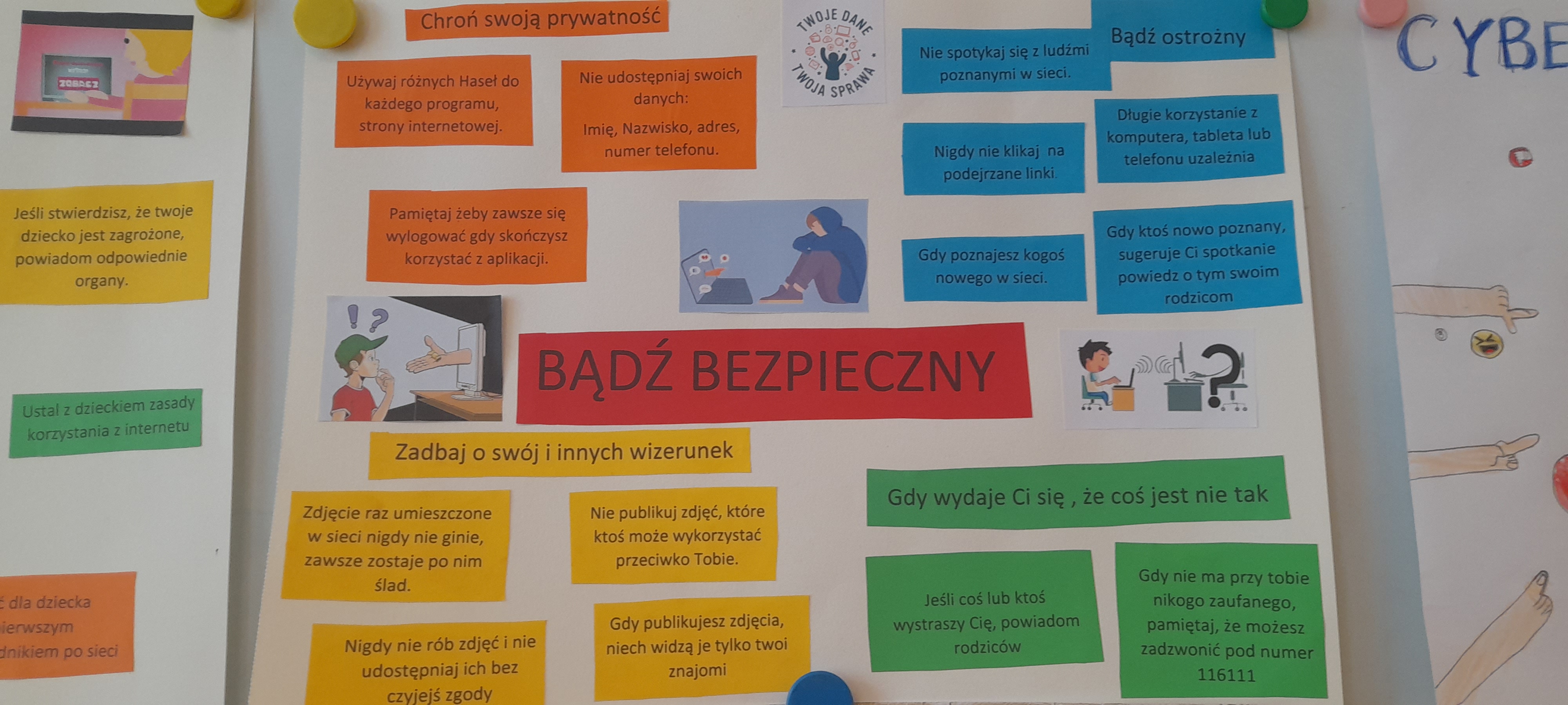Oficjalne motto Europejskiego Miesiąca Cyberbezpieczeństwa to: "Zastanów się, zanim klikniesz". W tym roku podejmowane były dwa ważne tematy z zakresu bezpiecznego korzystania z sieci: "Kompetencje cyfrowe" oraz "Oszustwa/przestępstwa internetowe”. Koordynatorką była nauczycielka informatyki Bogumiła Paluch. Na lekcjach informatyki w klasach IV-VIII przeprowadzano pogadanki tematyczne, oglądano filmiki edukacyjne pt. "Owce w sieci". Ponadto uczniowie wykonali plakaty nawiązujące do cyberprzemocy i cyberbezpieczeństwa, które mają pokazać, jak bezpiecznie korzystać z sieci i nowoczesnych technologii, jak radzić sobie z oszustami w sieci. Plakaty umieszczono w pracowni komputerowej i na szkolnym korytarzu.