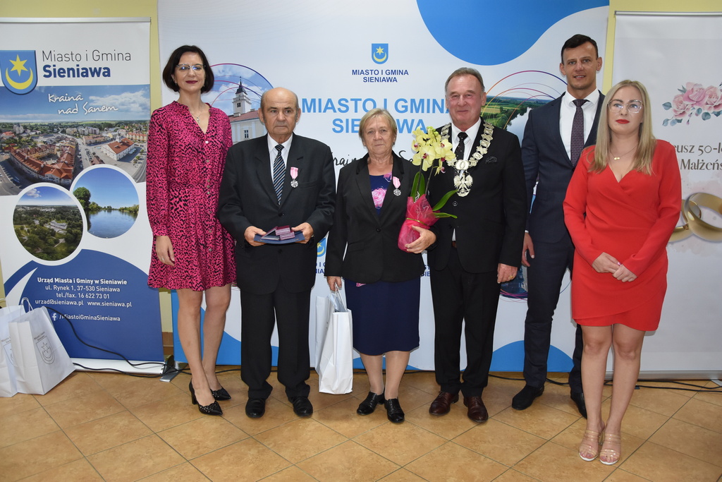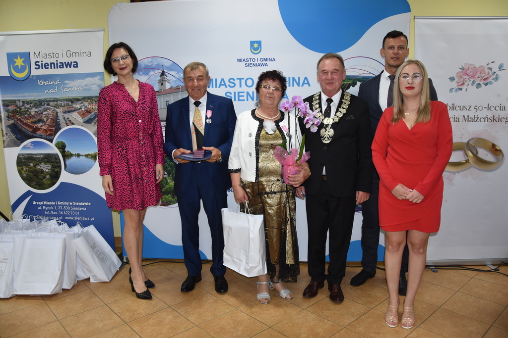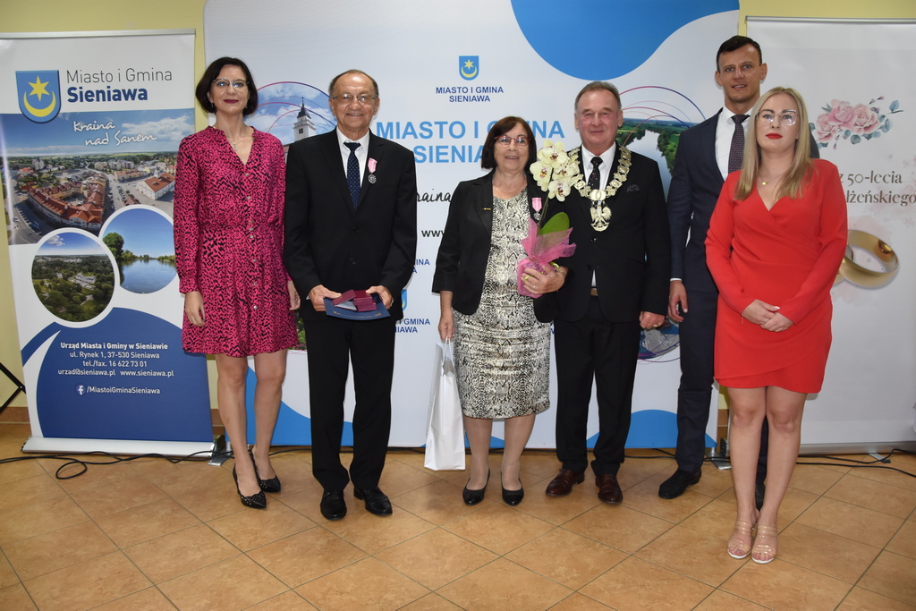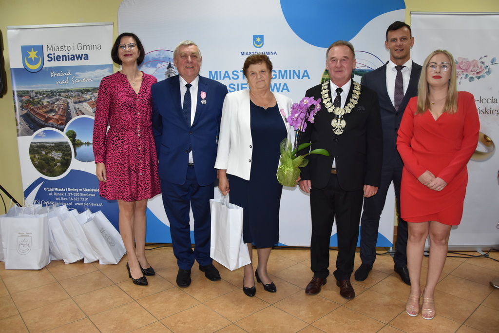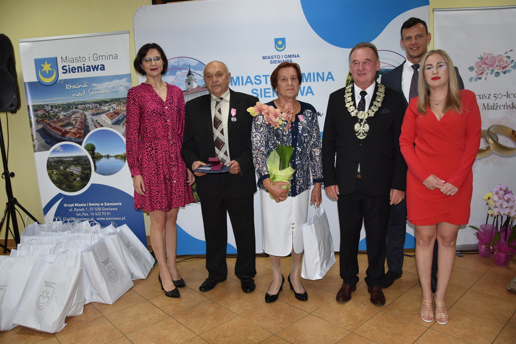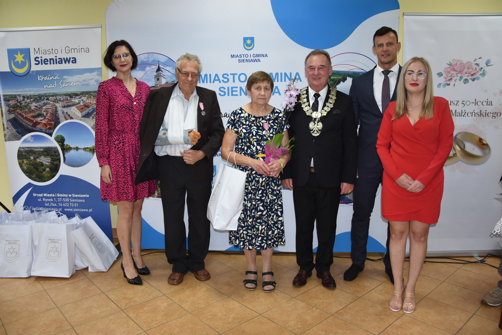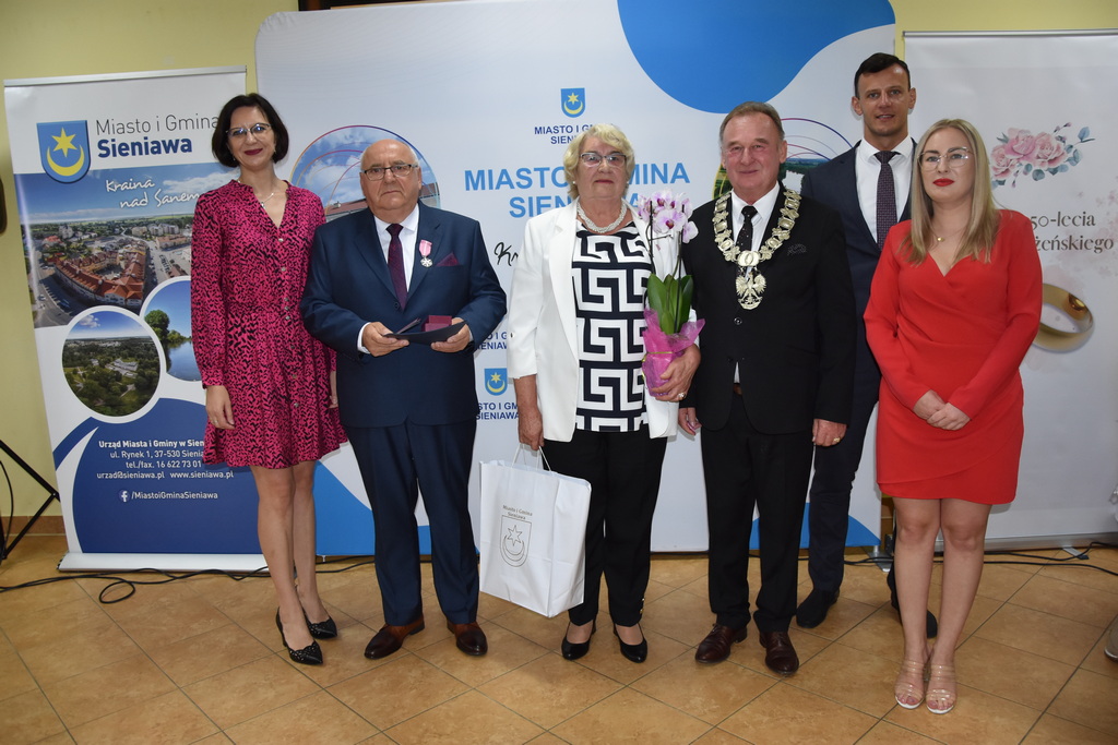 Wspólnie przeżyte lata są dowodem wierności i miłości rodzinnej, wzajemnego zrozumienia i istoty związku małżeńskiego. Zgodność pożycia małżeńskiego, trud pracy i wyrzeczeń dla dobra założonej przed pół wiekiem rodziny doceniony został przez władze państwowe, dowodem czego jest przyznanie przez Prezydenta RP specjalnych odznaczeń. Aktu dekoracji dostojnych jubilatów w imieniu Prezydenta RP dokonał Burmistrz Miasta i Gminy Sieniawa – Kierownik Urzędu Stanu Cywilnego Adam Woś. Złożył jednocześnie życzenia wielu wspólnych lat w zdrowiu oraz by doczekali wspólnie kolejnych pięknych jubileuszy.