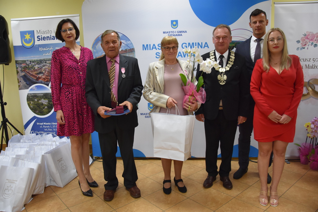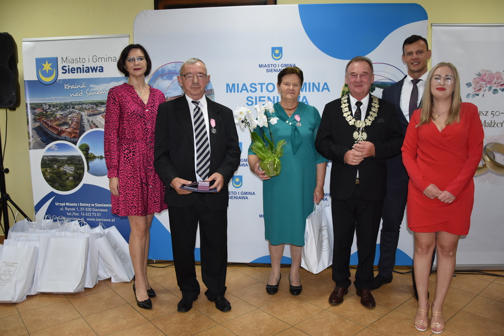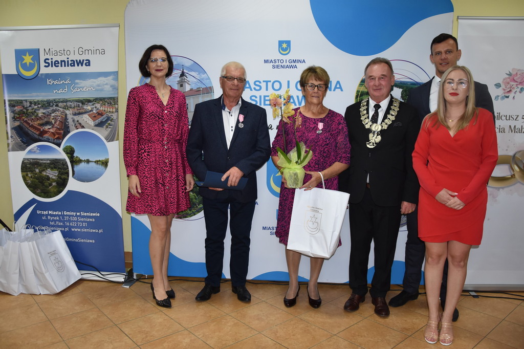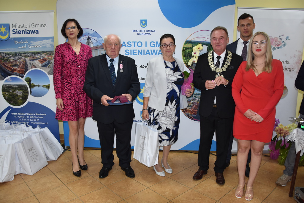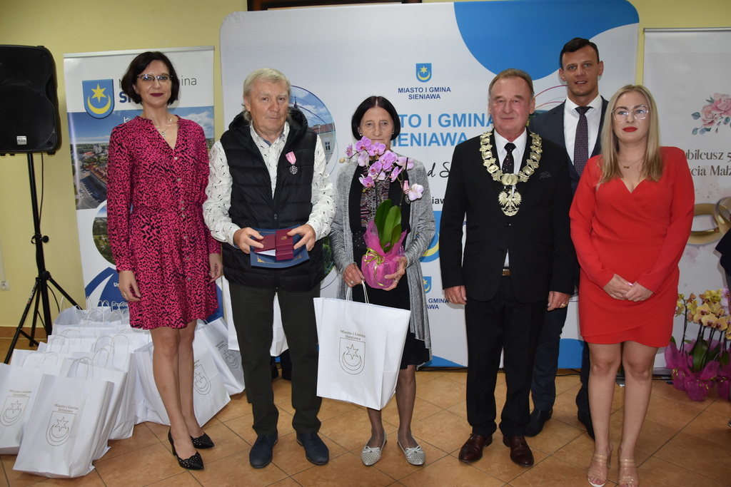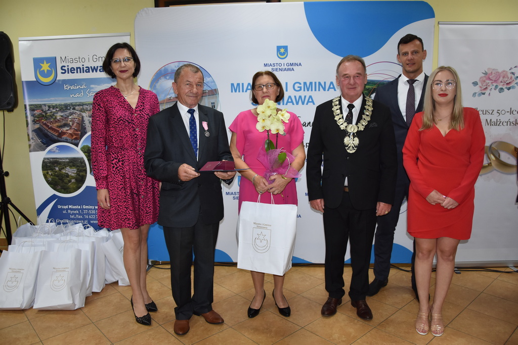 Wspólnie przeżyte lata są dowodem wierności i miłości rodzinnej, wzajemnego zrozumienia i istoty związku małżeńskiego. Zgodność pożycia małżeńskiego, trud pracy i wyrzeczeń dla dobra założonej przed pół wiekiem rodziny doceniony został przez władze państwowe, dowodem czego jest przyznanie przez Prezydenta RP specjalnych odznaczeń. Aktu dekoracji dostojnych jubilatów w imieniu Prezydenta RP dokonał Burmistrz Miasta i Gminy Sieniawa – Kierownik Urzędu Stanu Cywilnego Adam Woś. Złożył jednocześnie życzenia wielu wspólnych lat w zdrowiu oraz by doczekali wspólnie kolejnych pięknych jubileuszy.