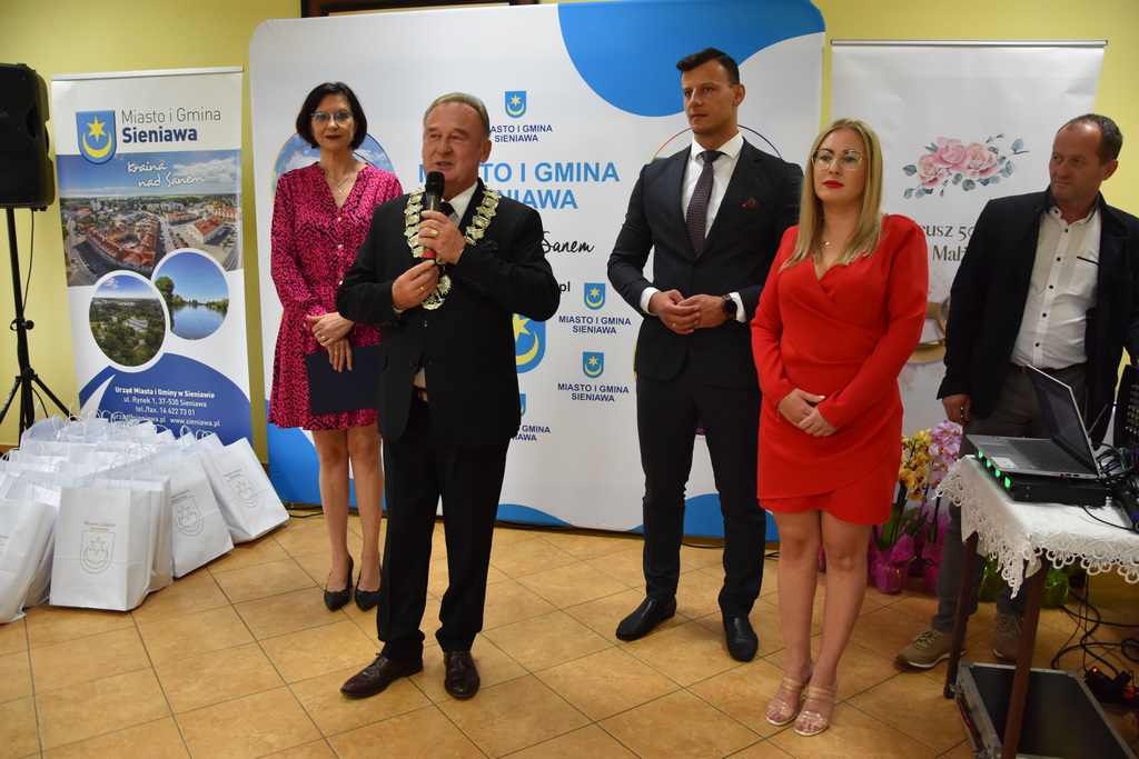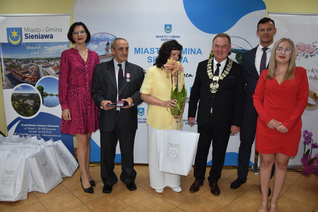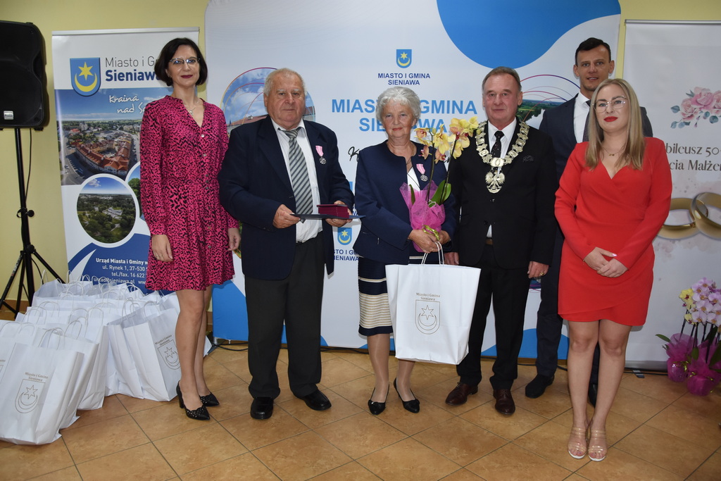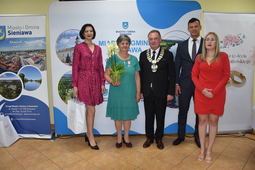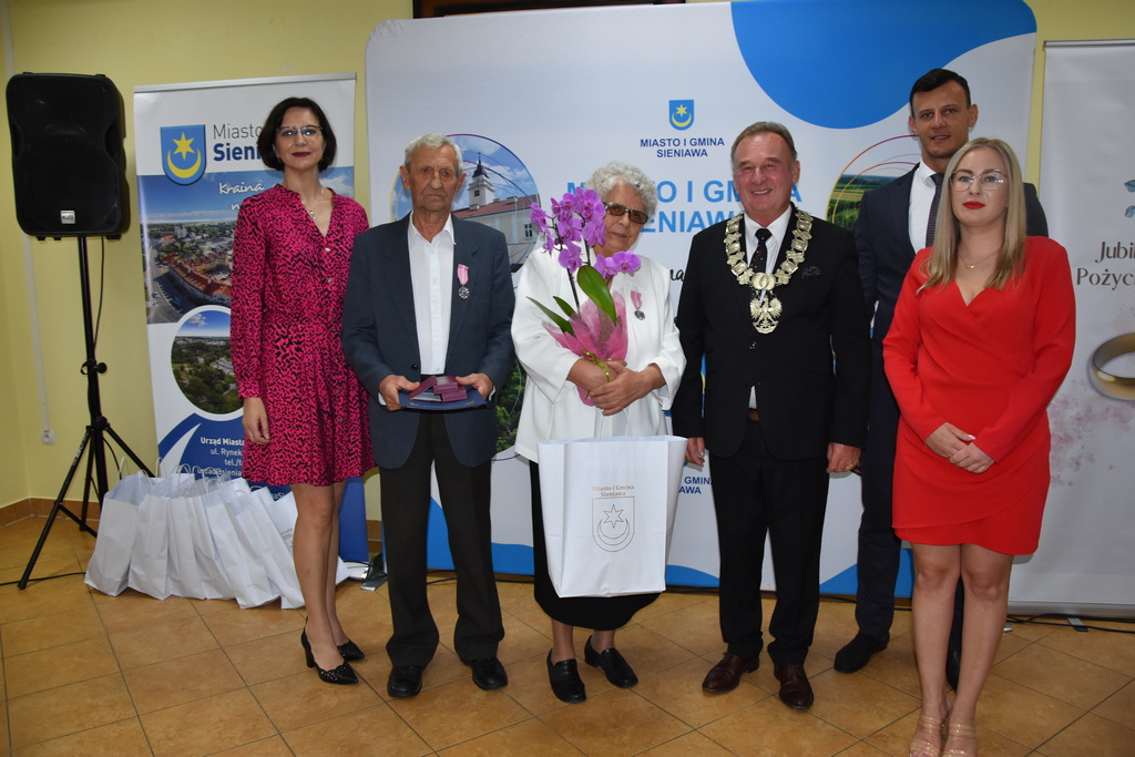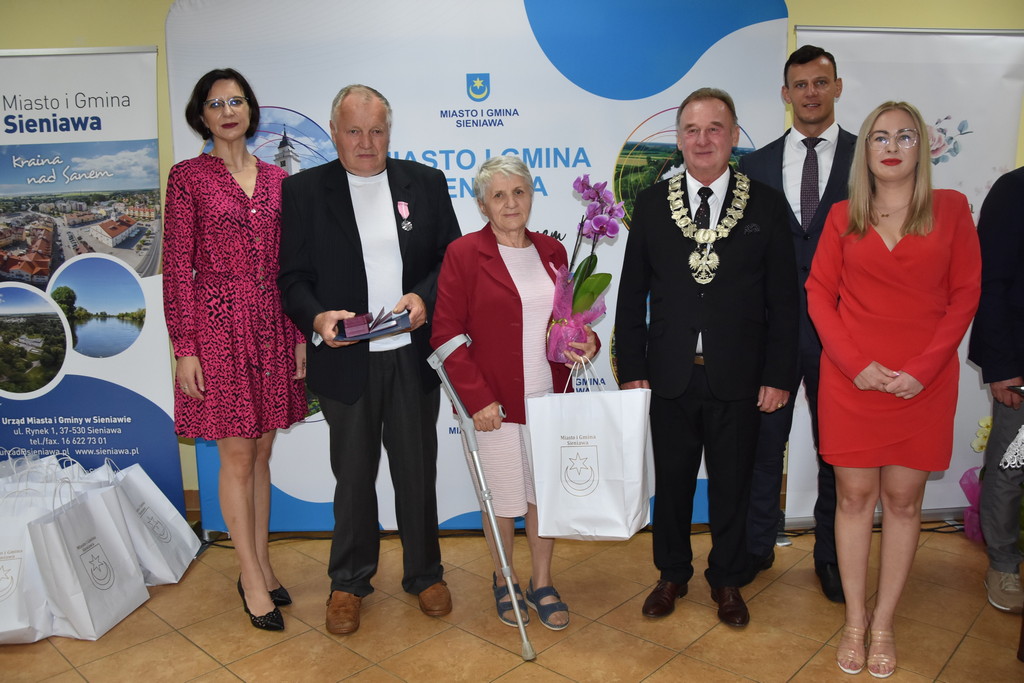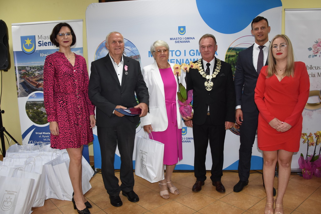 Wspólnie przeżyte lata są dowodem wierności i miłości rodzinnej, wzajemnego zrozumienia i istoty związku małżeńskiego. Zgodność pożycia małżeńskiego, trud pracy i wyrzeczeń dla dobra założonej przed pół wiekiem rodziny doceniony został przez władze państwowe, dowodem czego jest przyznanie przez Prezydenta RP specjalnych odznaczeń. Aktu dekoracji dostojnych jubilatów w imieniu Prezydenta RP dokonał Burmistrz Miasta i Gminy Sieniawa – Kierownik Urzędu Stanu Cywilnego Adam Woś. Złożył jednocześnie życzenia wielu wspólnych lat w zdrowiu oraz by doczekali wspólnie kolejnych pięknych jubileuszy.