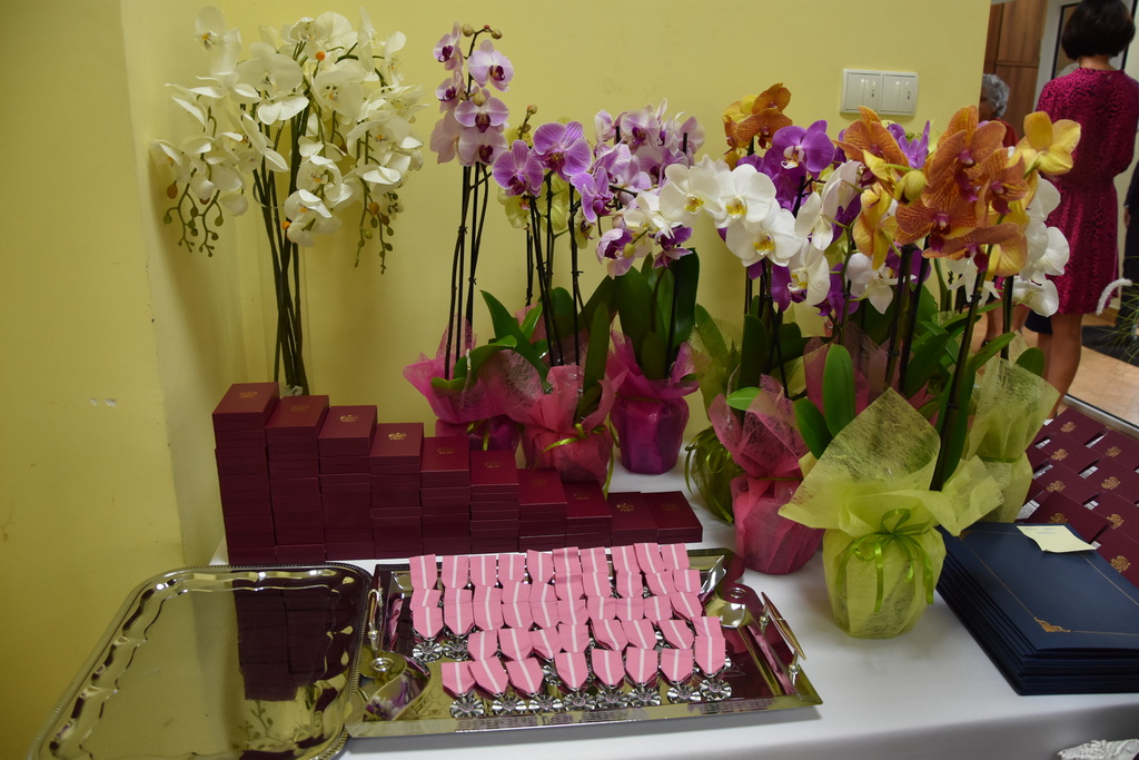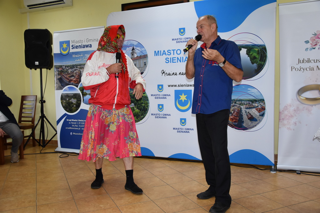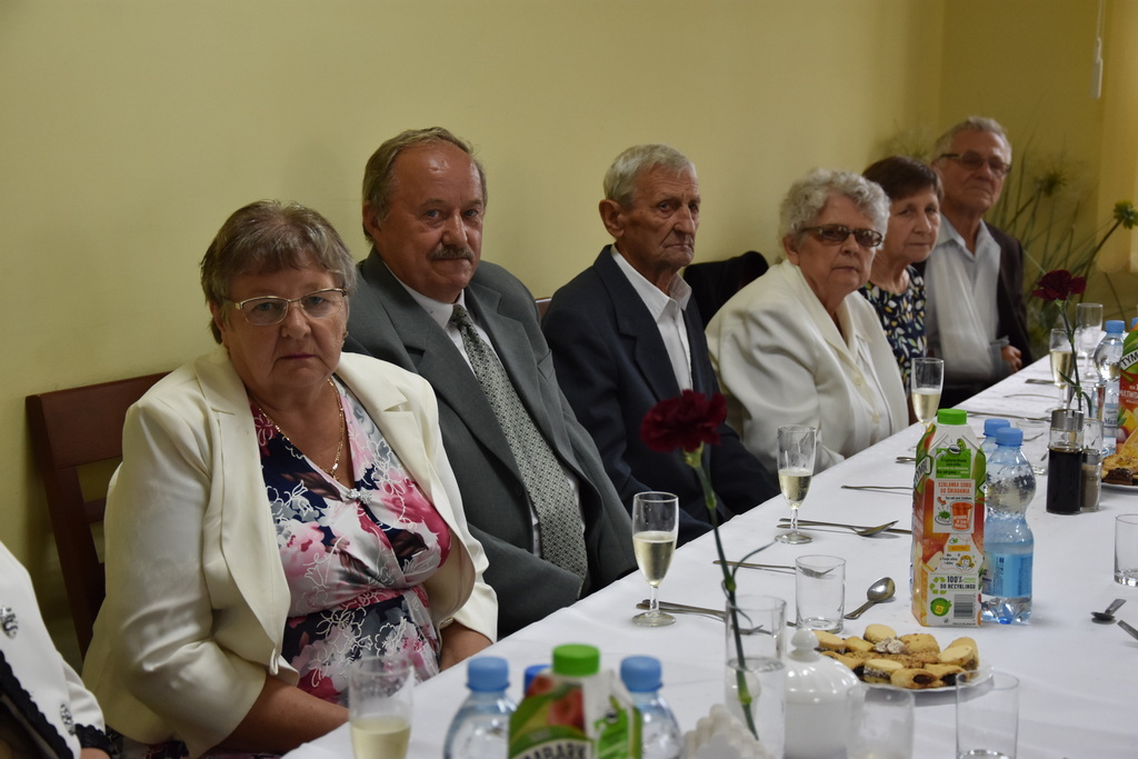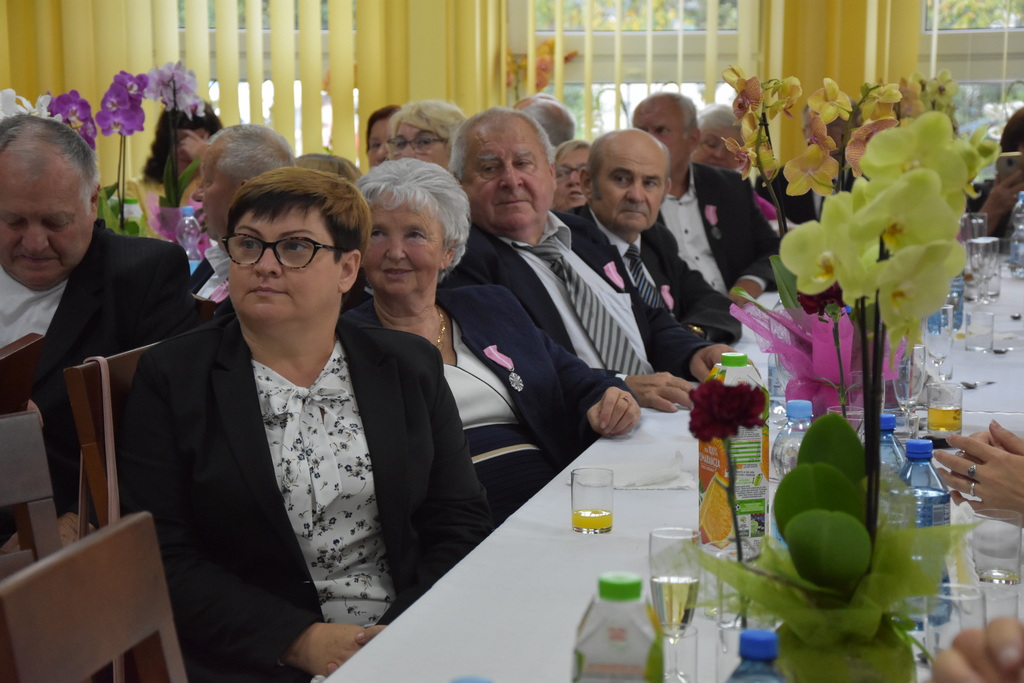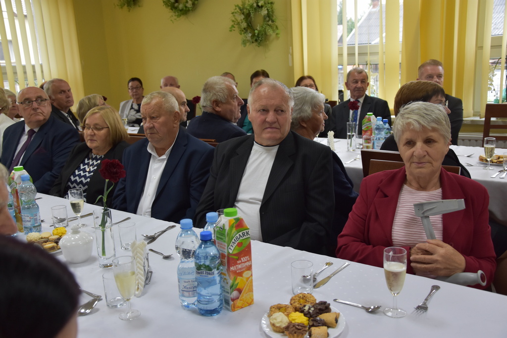 Dostojni Jubilaci otrzymali kwiaty, listy gratulacyjne oraz upominki z rąk zastępcy burmistrza Sebastiana Padiaska, sekretarz MiG Barbary Matyi oraz zastępcy kierownika USC Lidii Ciurko. Ceremonia dostarczyła wszystkim jubilatom wielu wzruszeń. Dla zaproszonych gości przygotowany został poczęstunek oraz część artystyczna. Uroczystość uświetnił występ kabaretu EWG, który w tematycznych skeczach z dużą dawką humoru opowiedział o prozie ludzkiego życia.