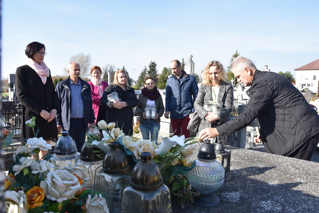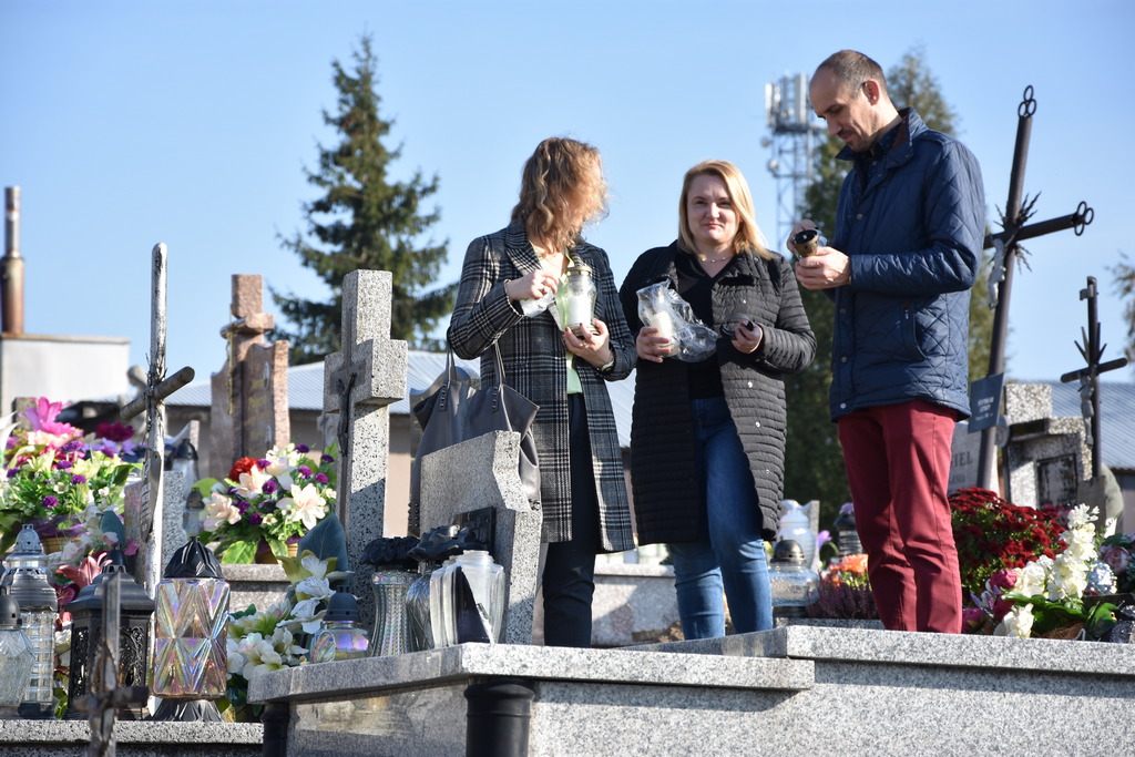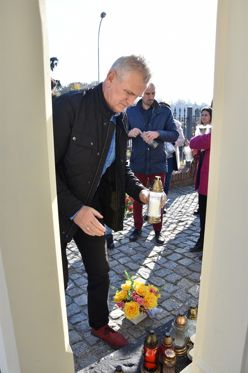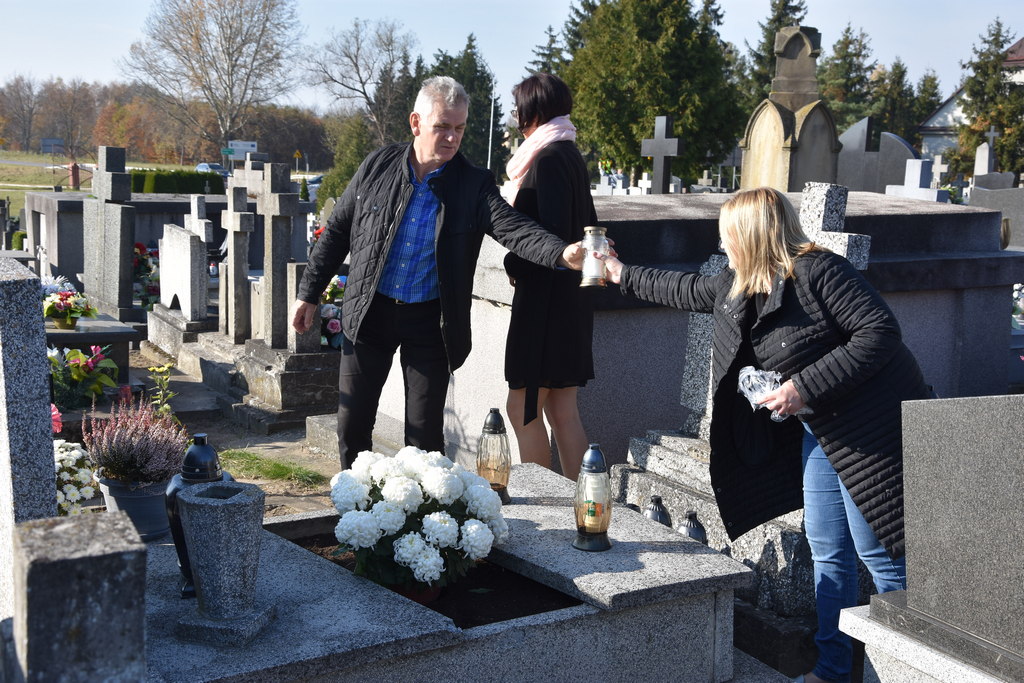 Delegacja pracowników Urzędu Miasta i Gminy w Sieniawie na czele z zastępcą burmistrza Miasta i Gminy Sieniawa Januszem Świtem, sekretarzem MiG Barbarą Matyją oraz kierownikiem Referatu Rozwoju i Gospodarki Komunalnej Jerzym Mazurem 28 października 2021 r. udała się na sieniawski cmentarz, aby zapalić znicze i otoczyć zmarłych modlitwą.