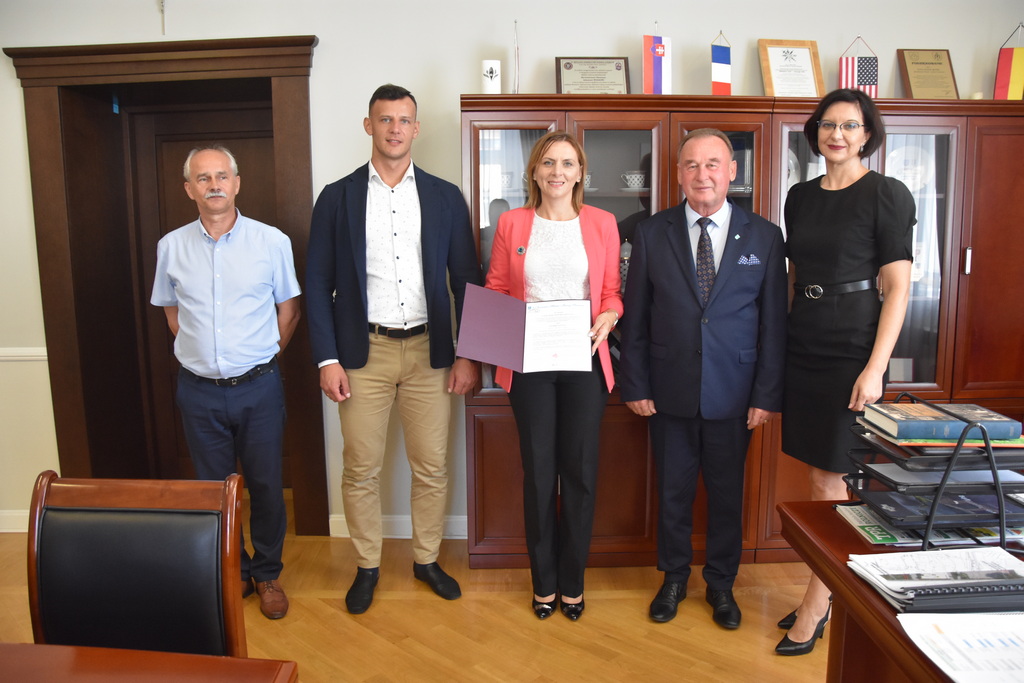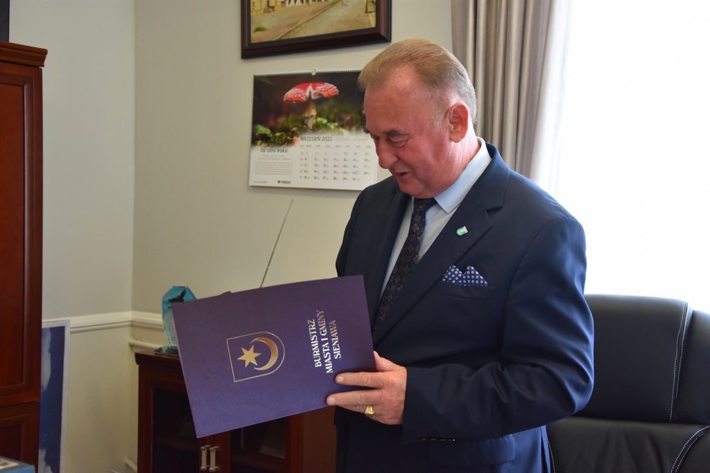 W dniu 4 września 2023 r. Burmistrz Miasta i Gminy Sieniawa Adam Woś uroczyście wręczył pani Małgorzacie Goch akt nadania stopnia nauczyciela mianowanego życząc dalszych sukcesów w życiu osobistym i zawodowym. Gratulacje złożyli również zastępca burmistrza Sebastian Padiasek, sekretarz MiG Barbara Matyja oraz kierownik Referatu Edukacji i Sportu Wacław Kondyra.