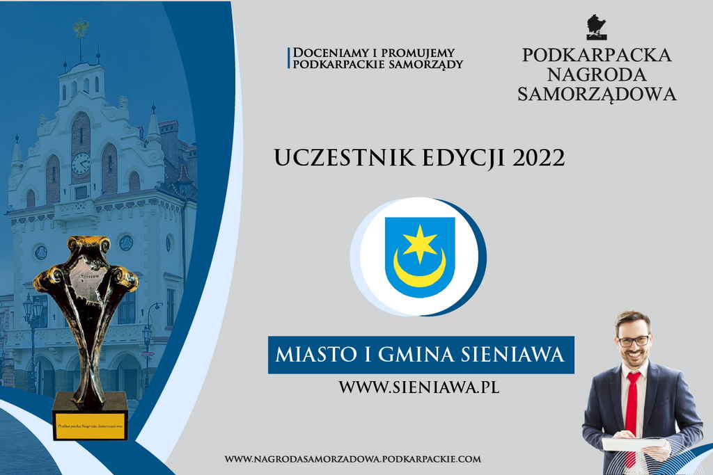 Podczas uroczystej gali 26 maja 2022 r. z okazji Dnia Samorządu Terytorialnego w Rzeszowie odbyło się rozstrzygnięcie konkursu Podkarpacka Nagroda Samorządowa. Miasto i Gmina Sieniawa otrzymała w nim nominację do Nagrody specjalnej w kategorii - "Sport, turystyka, rekreacja". To duże wyróżnienie dla naszego samorządu.