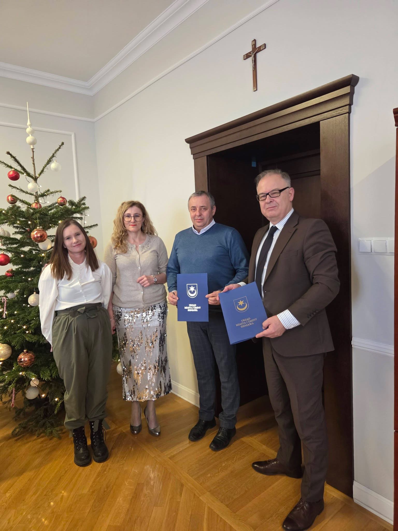 W dniu 31 grudnia 2025 r. Burmistrz Miasta i Gminy Sieniawa Witold Mrozek w kontrasygnacie Pani Skarbnik Bogusławy Mazurkiewicz podpisał umowę z Panem Stanisławem Cyganem właścicielem firmy Handlowo – Usługowo – Produkcyjnej MASTER Stanisław Cygan na realizację zadania pn.: „Odbieranie i zagospodarowanie odpadów komunalnych od właścicieli nieruchomości zamieszkałych i na których nie zamieszkują mieszkańcy, a powstają odpady komunalne z terenu Miasta i Gminy Sieniawa”.