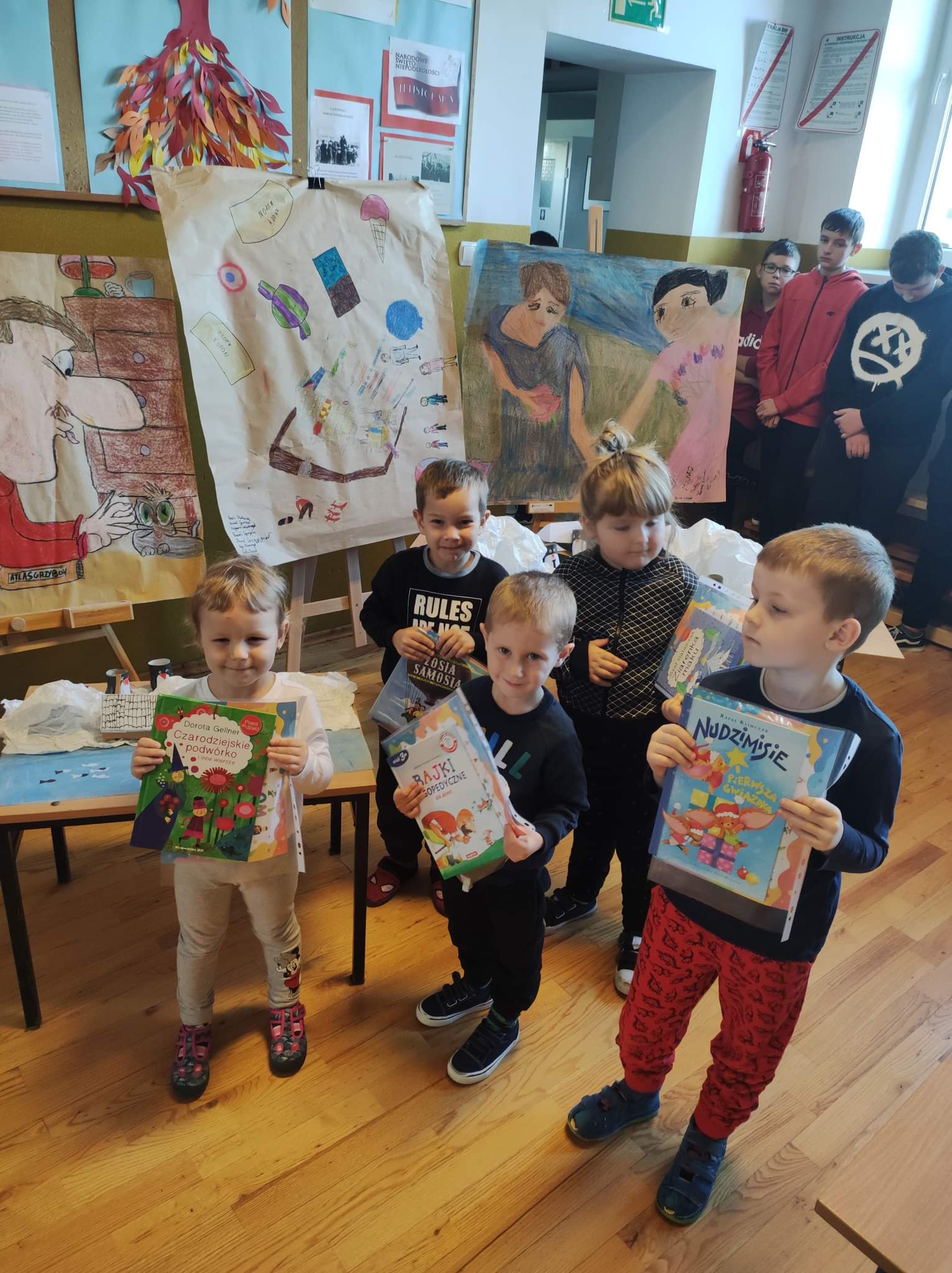 Najmłodszym dzieciom, czyli przedszkolakom, także wręczono piękne wydania bajek i wierszy m.in. za udział w zabawach, konkursach z okazji Międzynarodowego Dnia Postaci z Bajek. Radość i duma malująca się na twarzach dzieciaczków - bezcenna.
