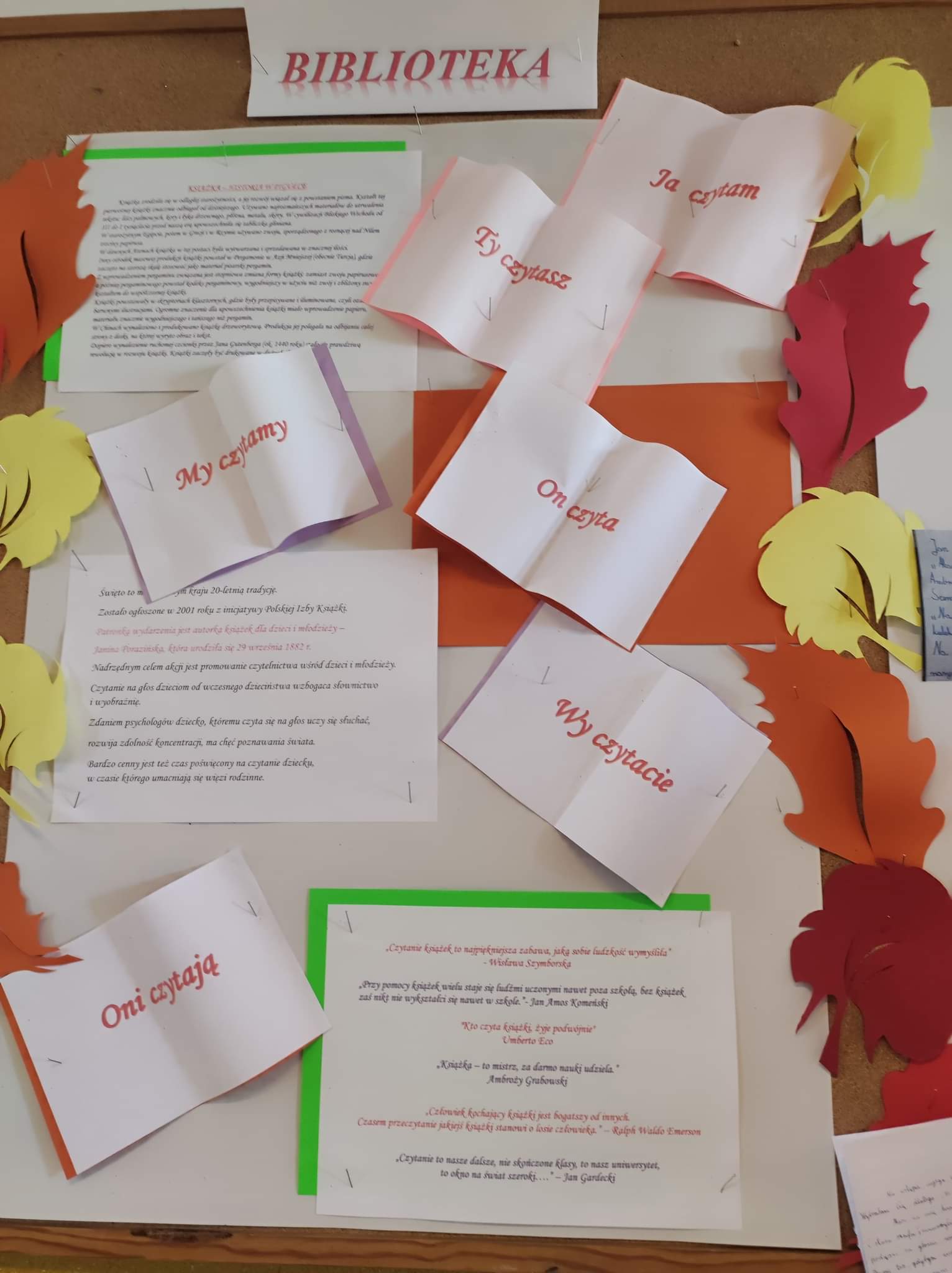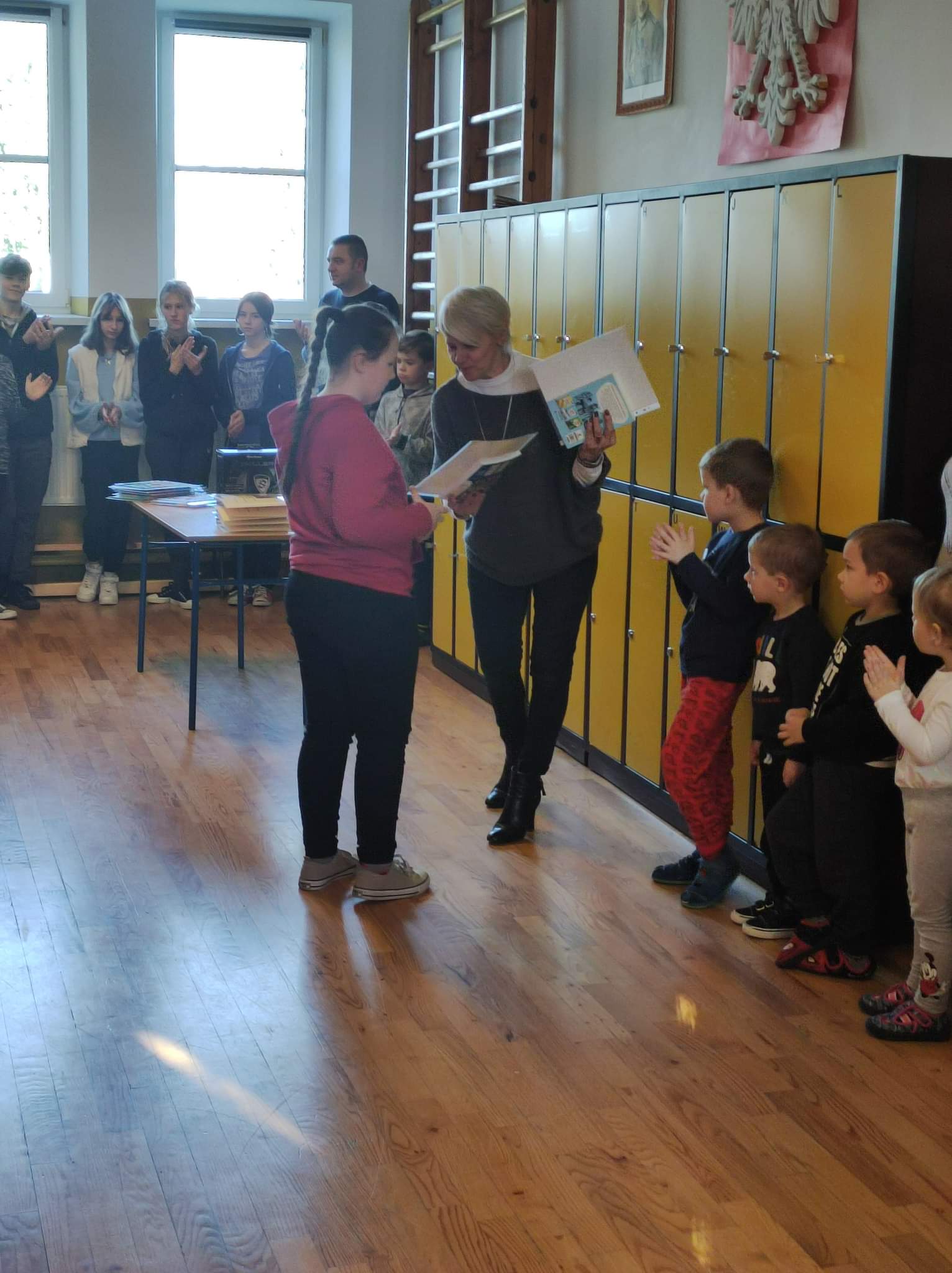 Scenerię utworzyły wykonane przez dzieci plakaty do losowo wybranej książki oraz makiety prezentujące zaczarowaną zagrodę z książki A. i Cz. Centkiewiczów. Podsumowano także przeprowadzony w klasach III-IV konkurs pt. „Książka moim przyjacielem”. Nagrodzeni zostali: Amelia Pyrczak, Karol Szczygieł, Patrycja Gołąb, Paulina Radawiec. Laureaci otrzymali dyplomy i nagrody książkowe.