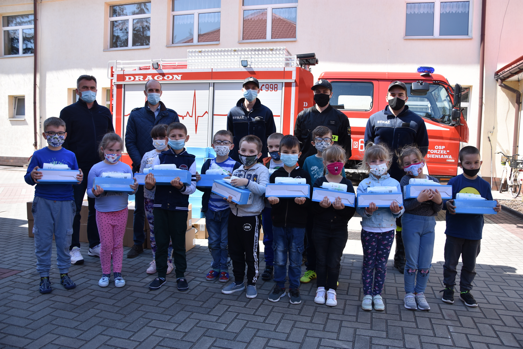 Dziękujemy także naszym nieocenionym strażakom z OSP KSRG Sieniawa, druhom Erykowi Szpilce, Kacprowi Ciurko i Maciejowi Pucyło oraz komendantowi miejsko-gminnemu ZOSP RP Erykowi Ceglakowi, którzy pracowali przy dystrybucji środków.
