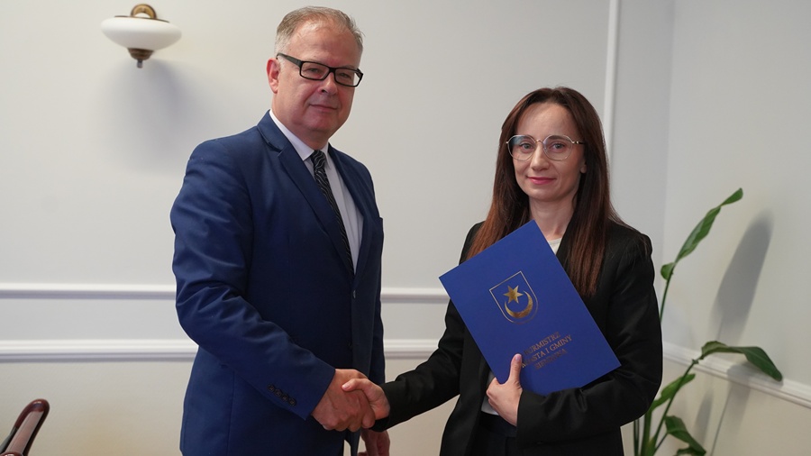 10 lipca br. akt powierzenia pełnienia obowiązków dyrektora Szkoły Podstawowej im. I. Krasickiego w Rudce odebrała z rąk burmistrza nauczycielka tej placówki, pani Marta Łazarowicz-Pawul.