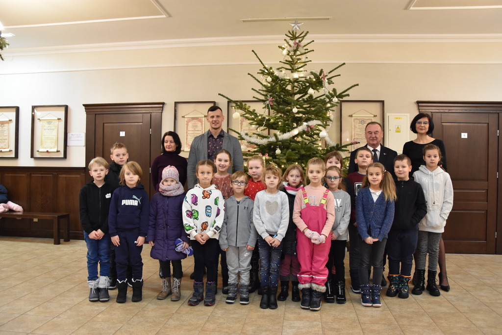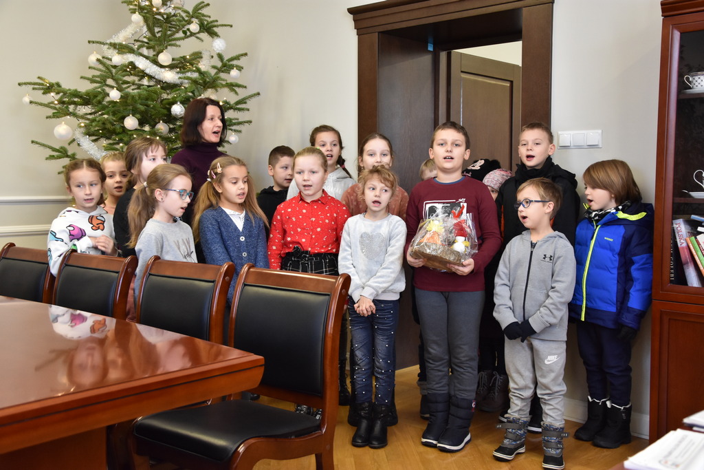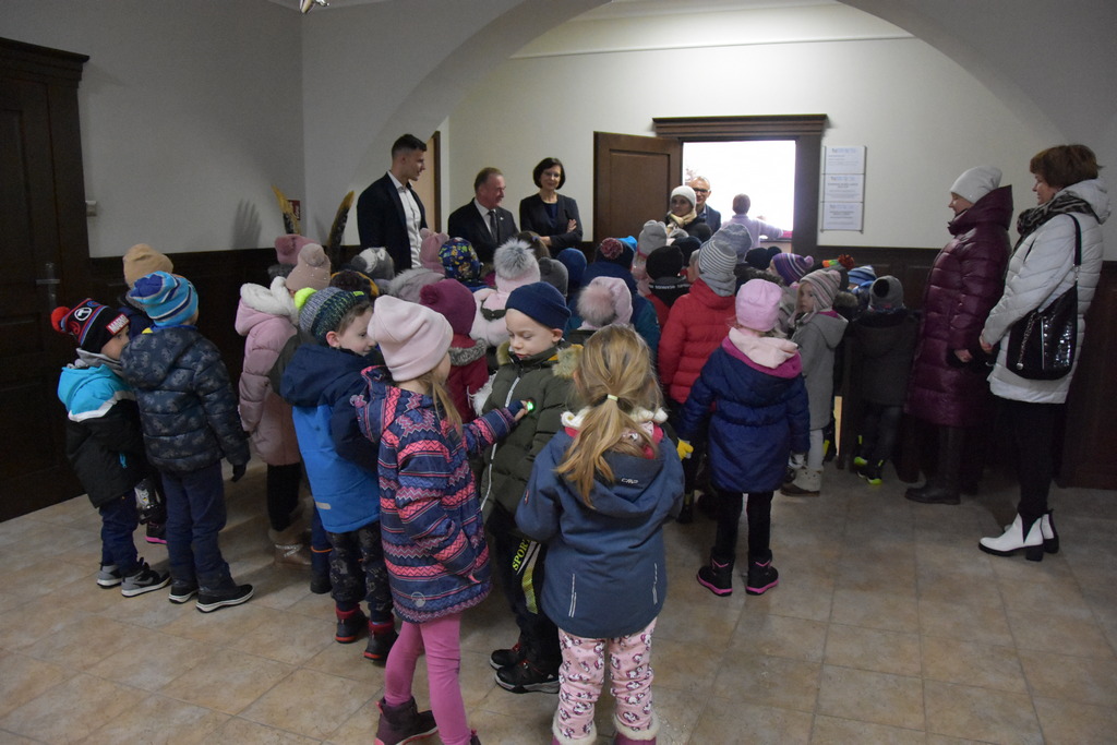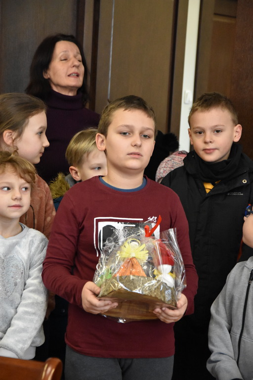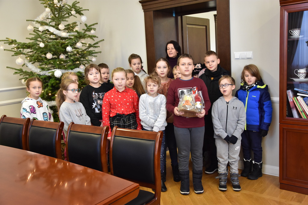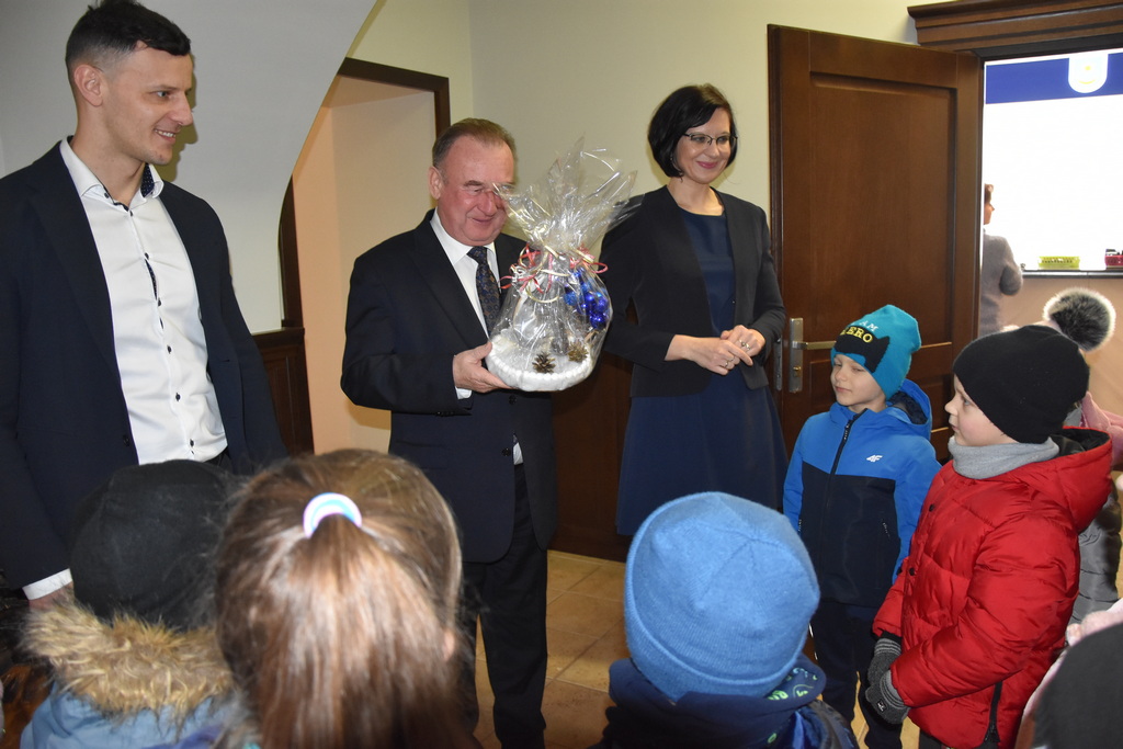 21 grudnia 2022 r. w urzędzie gościły dzieci z Miejskiego Przedszkola w Sieniawie i Przedszkola Sióstr Służebniczek NMP, panie z Przedszkola Kraina Marzeń Dziecięcych i Sieniawskie Skrzaty znajdującego się w parku, uczestnicy Środowiskowego Domu Samopomocy w Sieniawie, a także panie dyrektorki ze szkół podstawowych z terenu gminy. Kilka dni wcześniej z kolędą i zaproszeniem na kiermasz przybyła delegacja samorządu uczniowskiego z Rudki, a także dzieci z klas 0 SP w Sieniawie oraz kl. IIa SP w Sieniawie. Gwarno, tłoczno, serdecznie, przemiło.