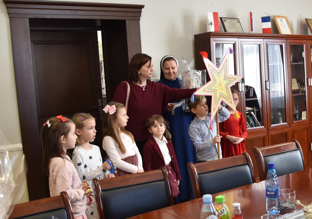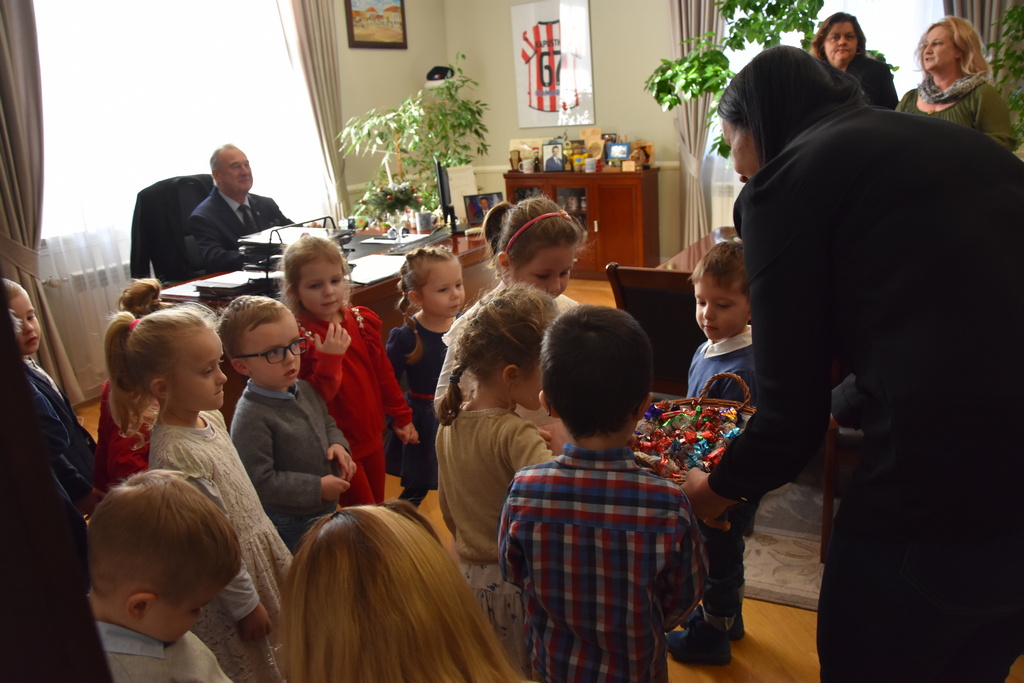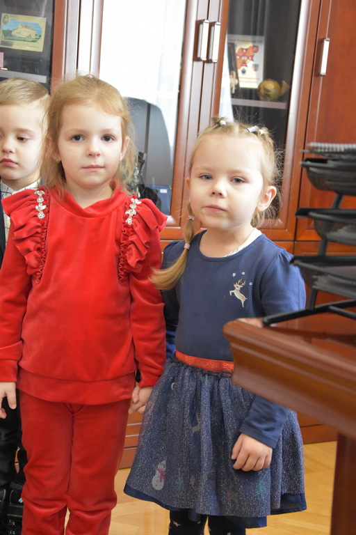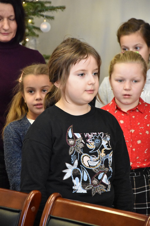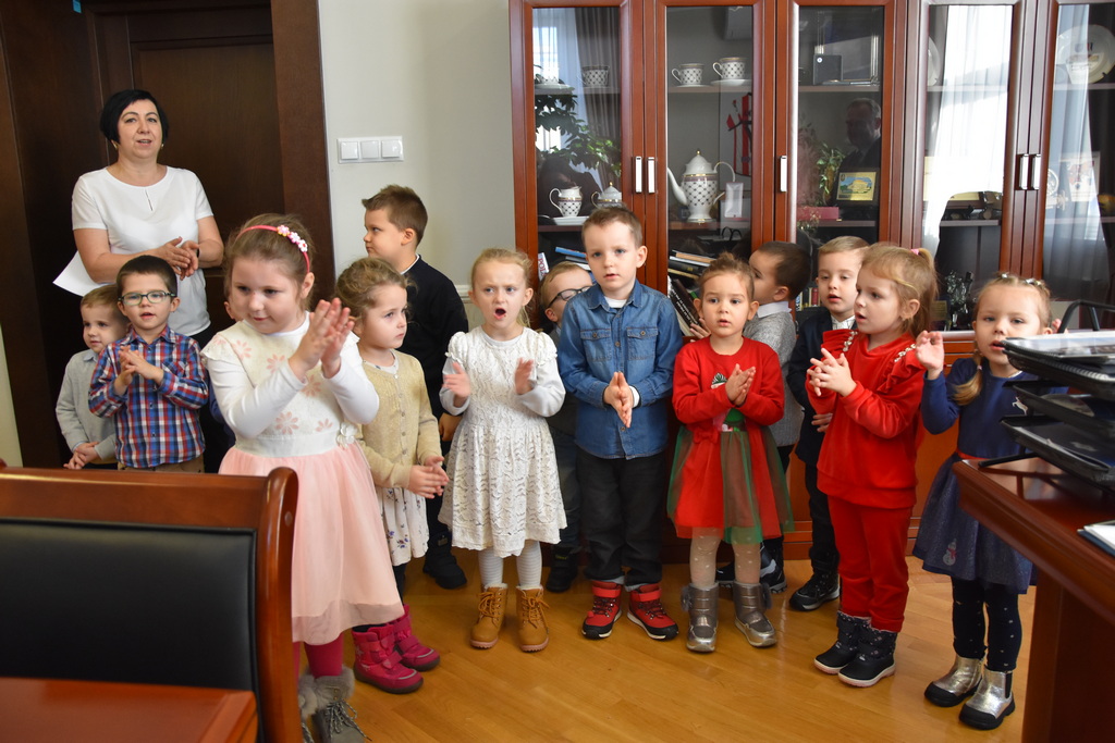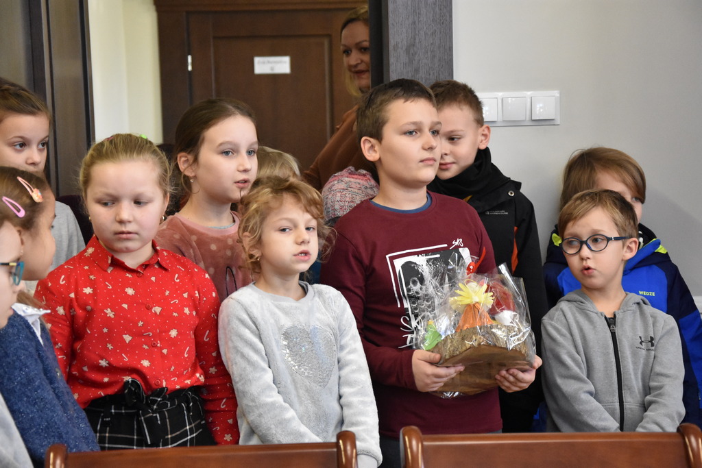 21 grudnia 2022 r. w urzędzie gościły dzieci z Miejskiego Przedszkola w Sieniawie i Przedszkola Sióstr Służebniczek NMP, panie z Przedszkola Kraina Marzeń Dziecięcych i Sieniawskie Skrzaty znajdującego się w parku, uczestnicy Środowiskowego Domu Samopomocy w Sieniawie, a także panie dyrektorki ze szkół podstawowych z terenu gminy. Kilka dni wcześniej z kolędą i zaproszeniem na kiermasz przybyła delegacja samorządu uczniowskiego z Rudki, a także dzieci z klas 0 SP w Sieniawie oraz kl. IIa SP w Sieniawie. Gwarno, tłoczno, serdecznie, przemiło.