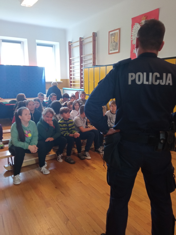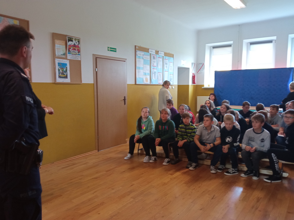 Rozmawiali o bezpieczeństwie. Spotkanie z policjantem w SP w Rudce