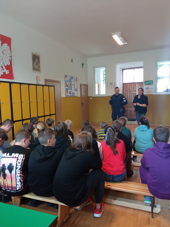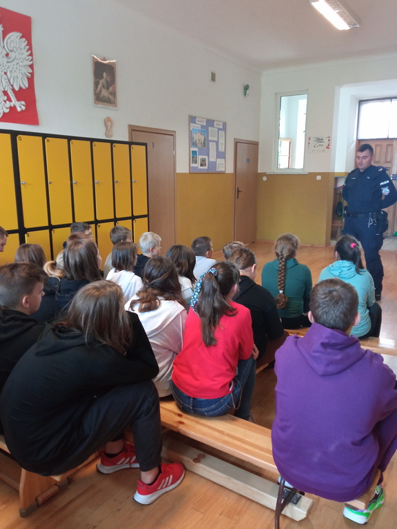 W Szkole Podstawowej w Rudce odbyło się spotkanie z nowym dzielnicowym st. sierż. Konradem Pieniążkiem, który przez dwie godziny rozmawiał z uczniami na temat szeroko pojętego bezpieczeństwa.