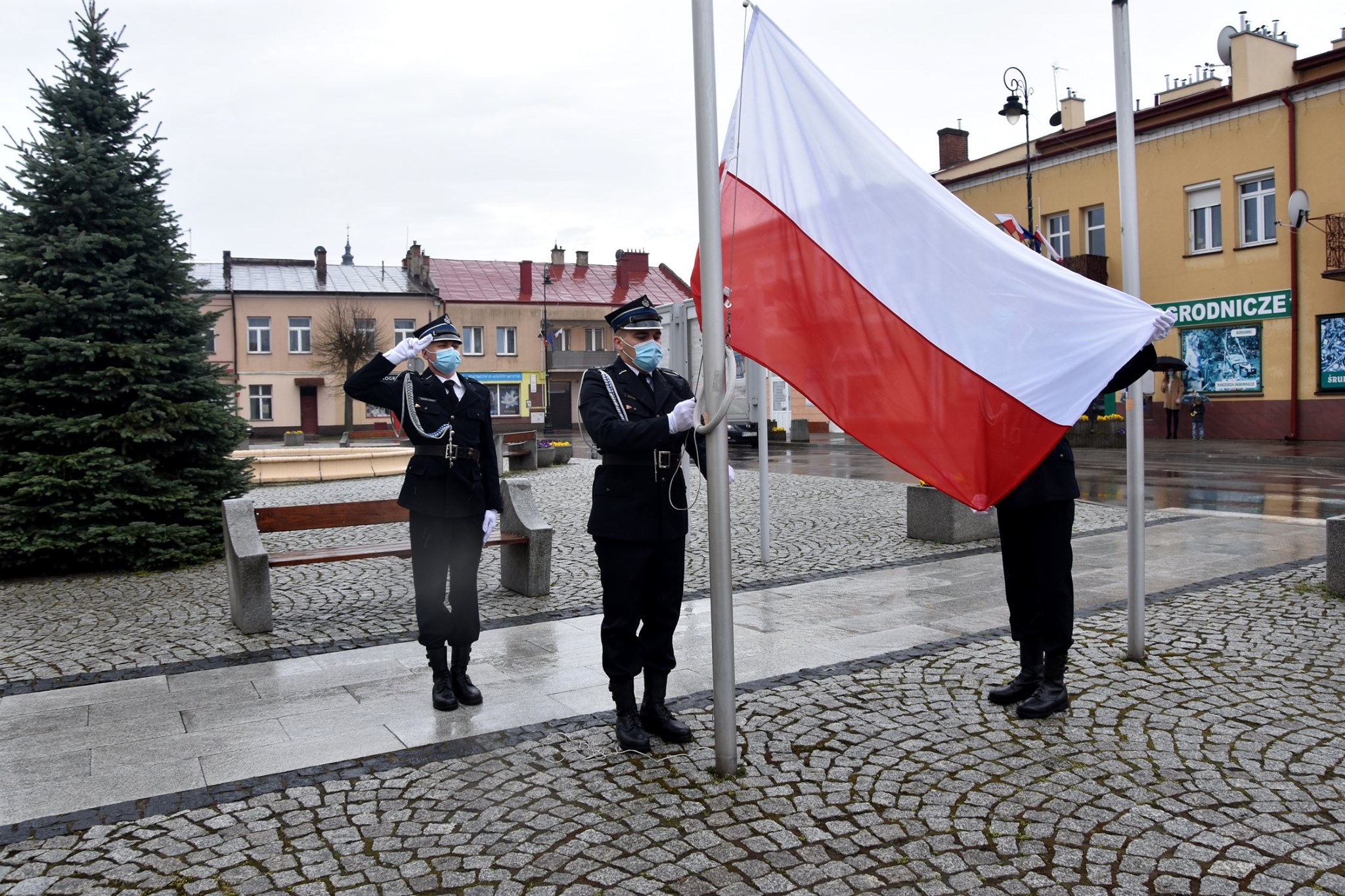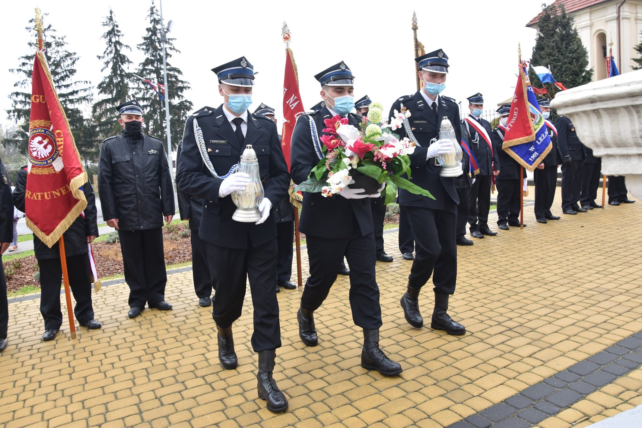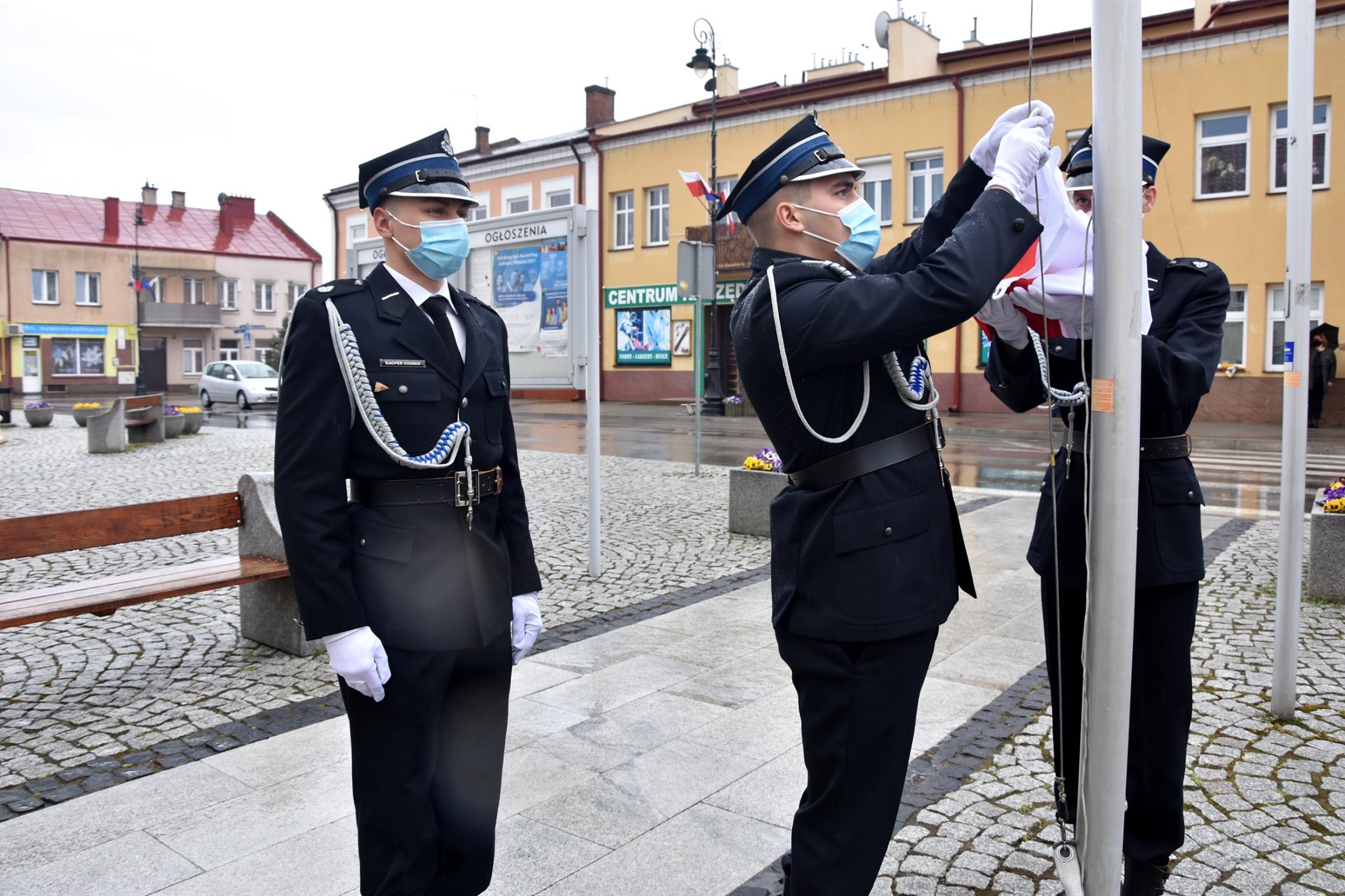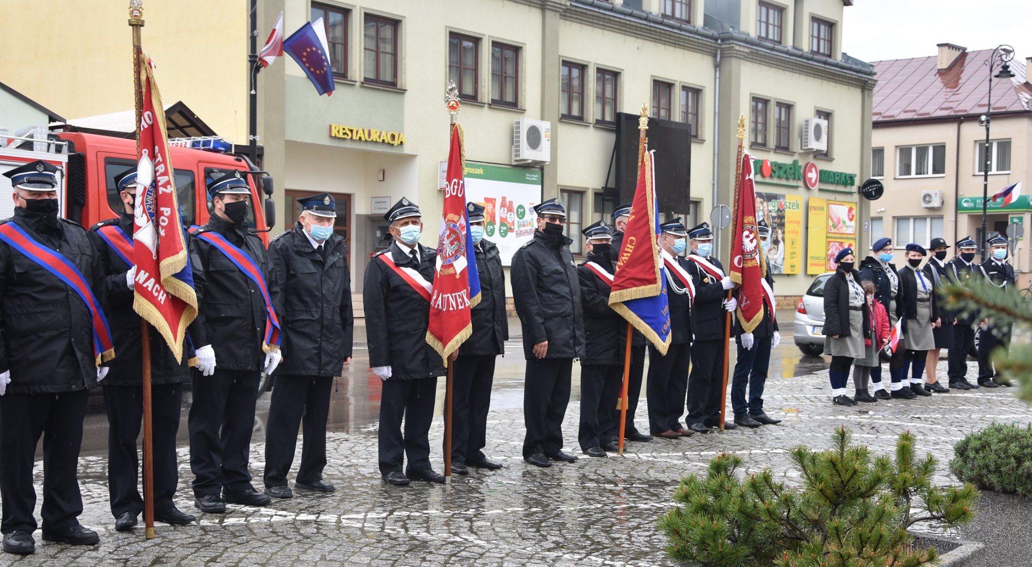 Po uroczystościach na rynku strażacy złożyli wiązankę kwiatów i zapalili znicze pod pomnikiem św. Floriana z okazji przypadającego 4 maja święta strażaków. Gminne obchody odbędą się 9 maja 2021 r. w Czercach.