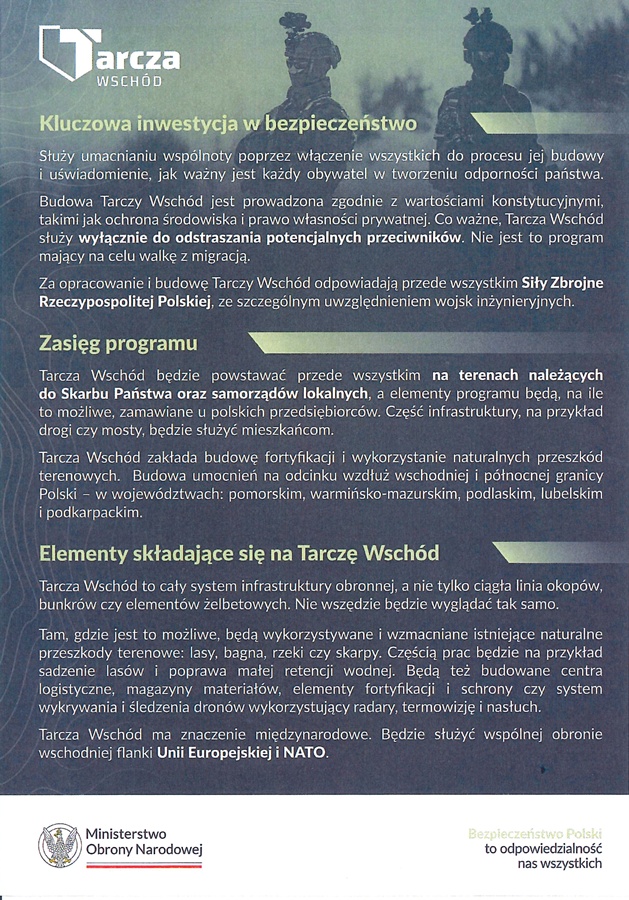 Tarcza Wschód ma znaczenie, międzynarodowe. Program będzie służyć wspólnej obronie wschodniej flanki Unii Europejskiej i NATO.