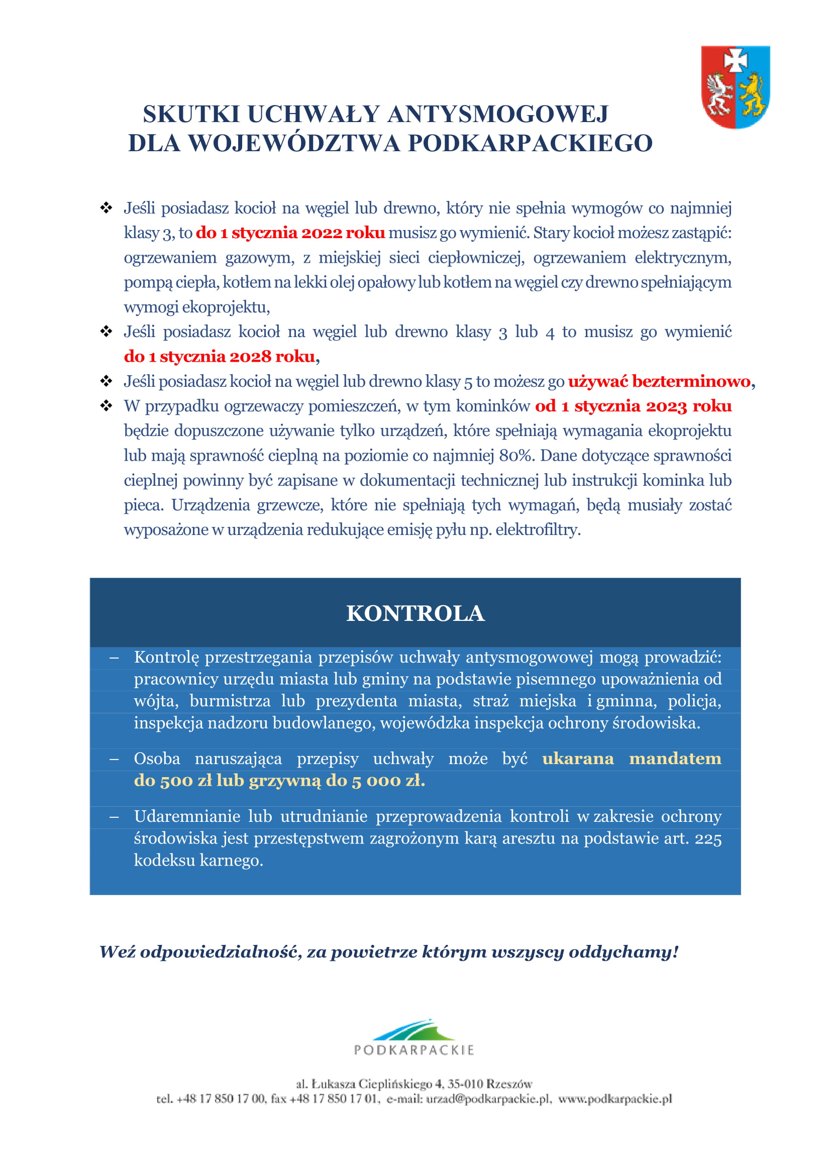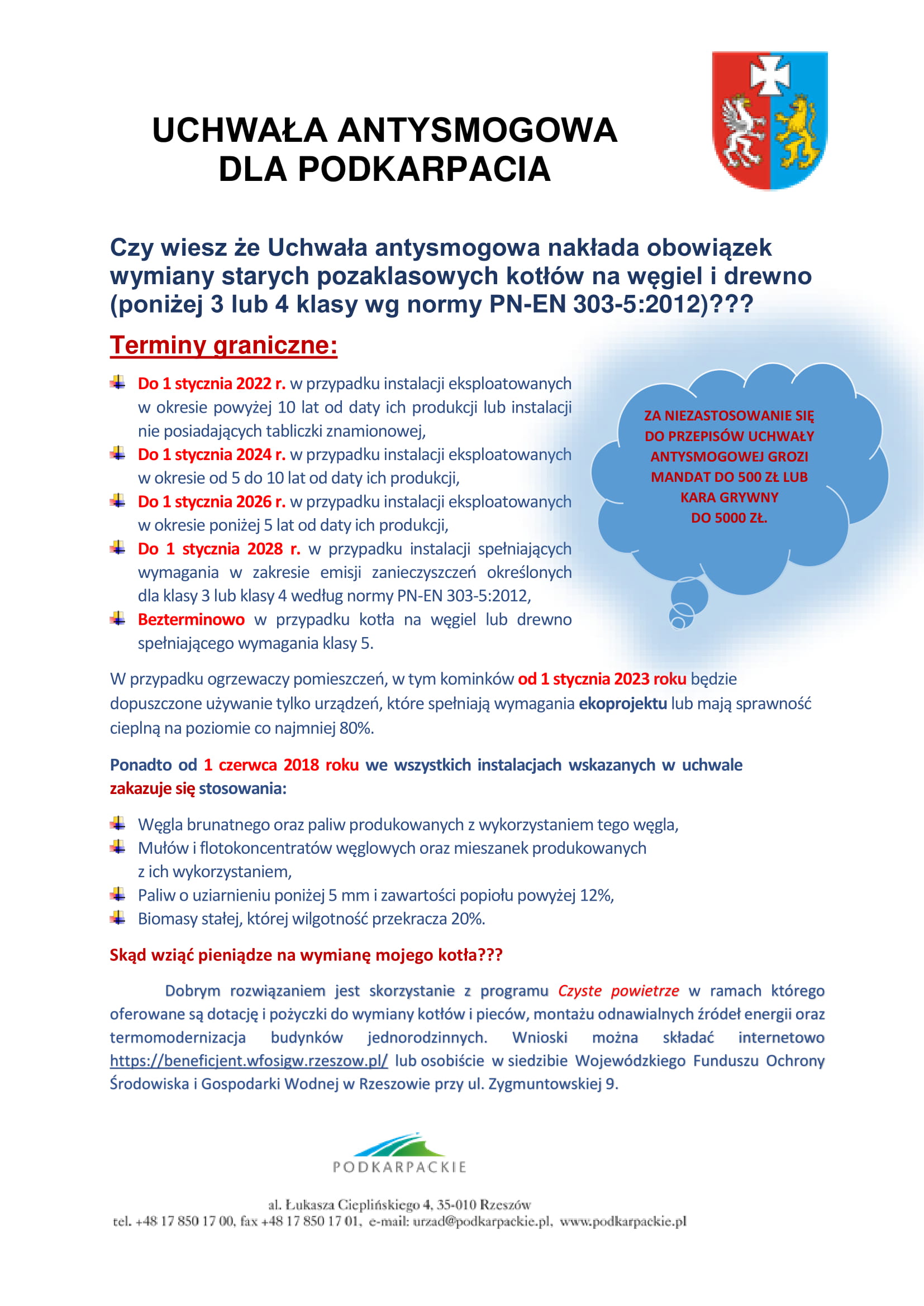 Z całą treścią ww. uchwały antysmogowej można zapoznać się na stronie internetowej Biuletynu Informacji Publicznej Urzędu Marszałkowskiego Województwa Podkarpackiego