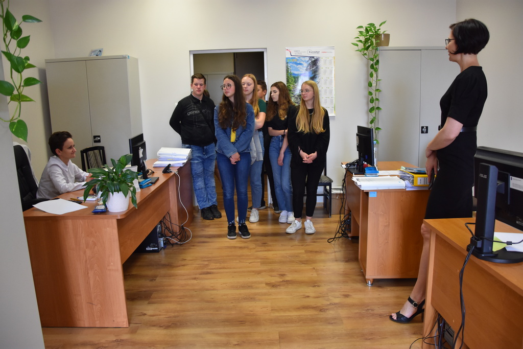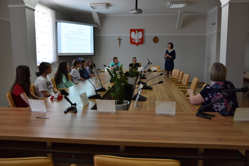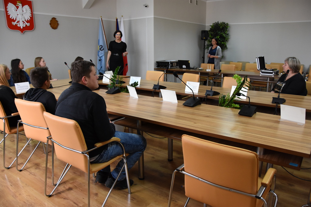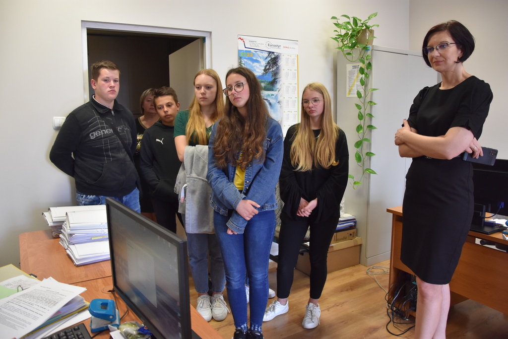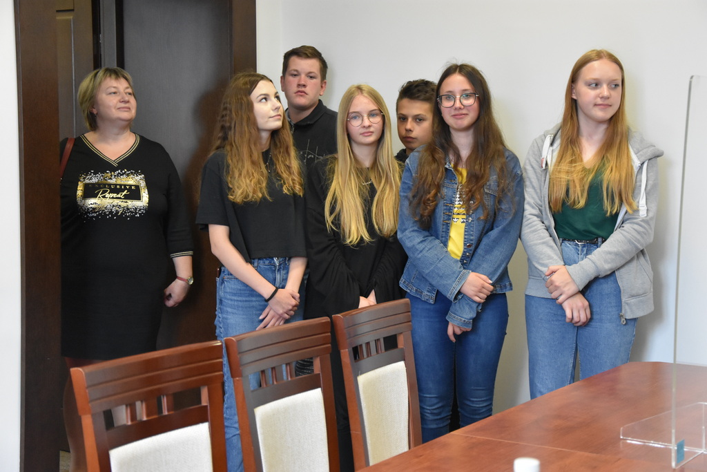 Uczniowie z Czerwonej Woli i Rudki na lekcji wiedzy o społeczeństwie w murach urzędu