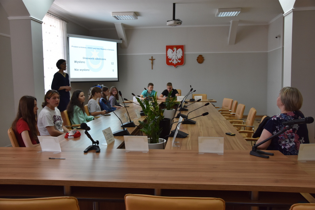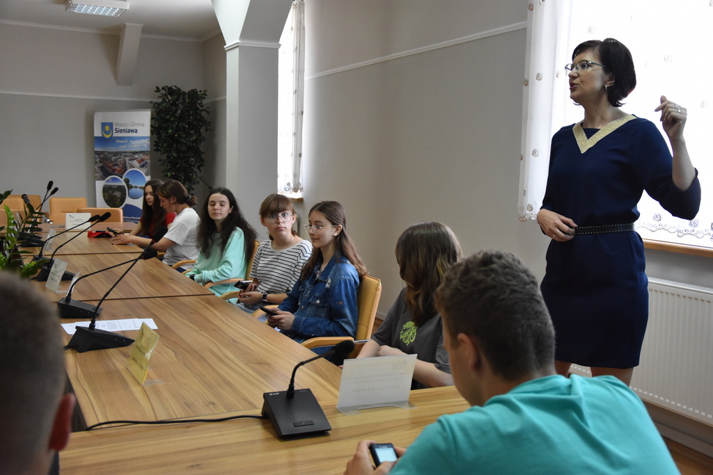 Jak wygląda praca w urzędzie, jakie sprawy można tutaj załatwić? Czym zajmuje się Burmistrz, a także Rada Miejska i gdzie obraduje? O tym wszystkim, i wielu innych ciekawostkach na terenowej lekcji wiedzy o społeczeństwie, mogli dowiedzieć się uczniowie klasy VIII Szkoły Podstawowej im. Jana Pawła II w Czerwonej Woli i Szkoły Podstawowej im. I. Krasickiego w Rudce, którzy przybyli do magistratu wraz z nauczycielką Renatą Barszczak. Sporą dawkę wiedzy o samorządzie przekazała uczniom sekretarz Miasta i Gminy Sieniawa Barbara Matyja.